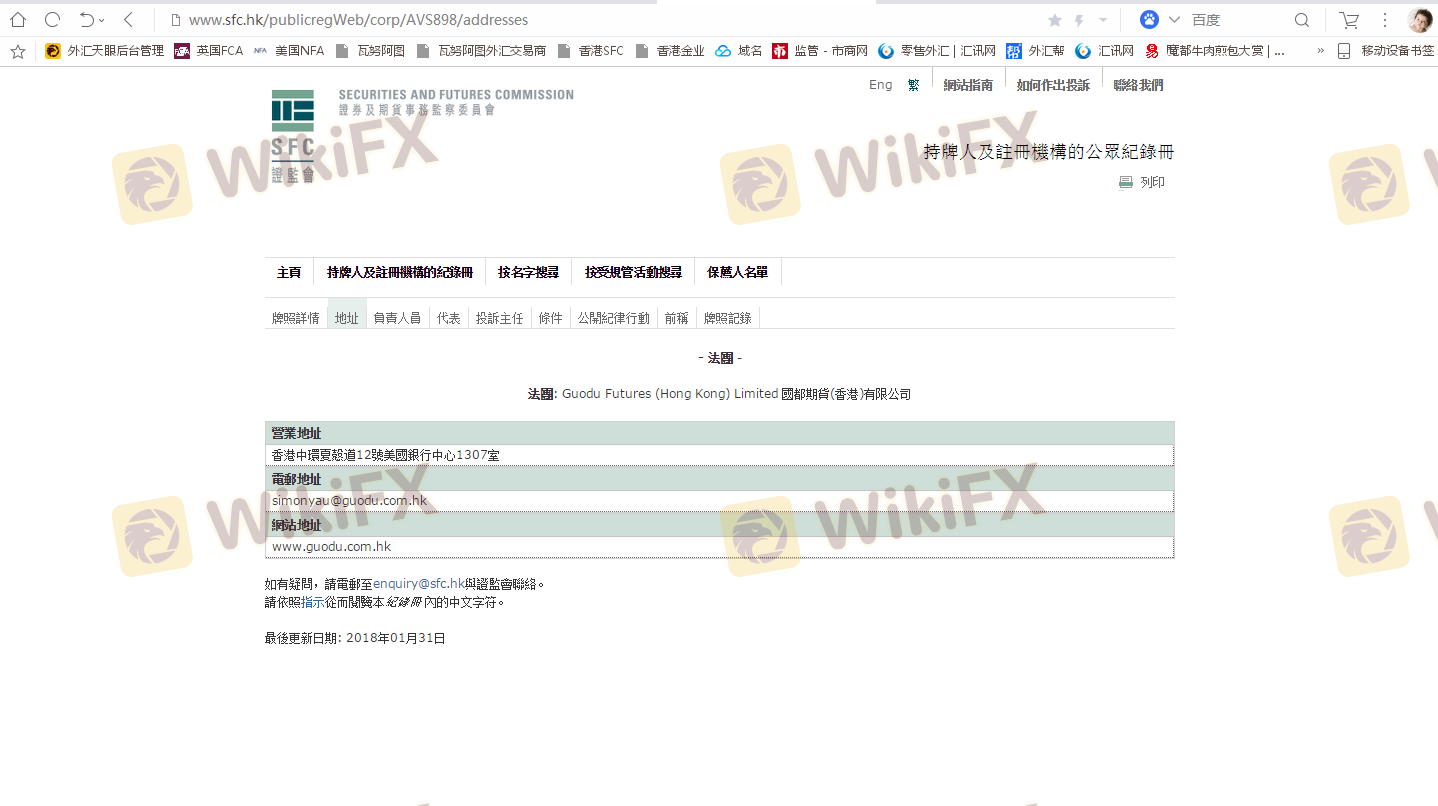 Memahami lingkungan regulasi di mana broker beroperasi sangat penting untuk menilai legalitasnya. Guodu diatur oleh Securities and Futures Commission (SFC) Hong Kong, otoritas terkemuka yang bertanggung jawab untuk mengawasi integritas pasar keuangan di wilayah tersebut. Kerangka regulasi ketat SFC memastikan bahwa broker yang berlisensi mematuhi standar perilaku yang tinggi, sehingga menawarkan lapisan perlindungan bagi trader.