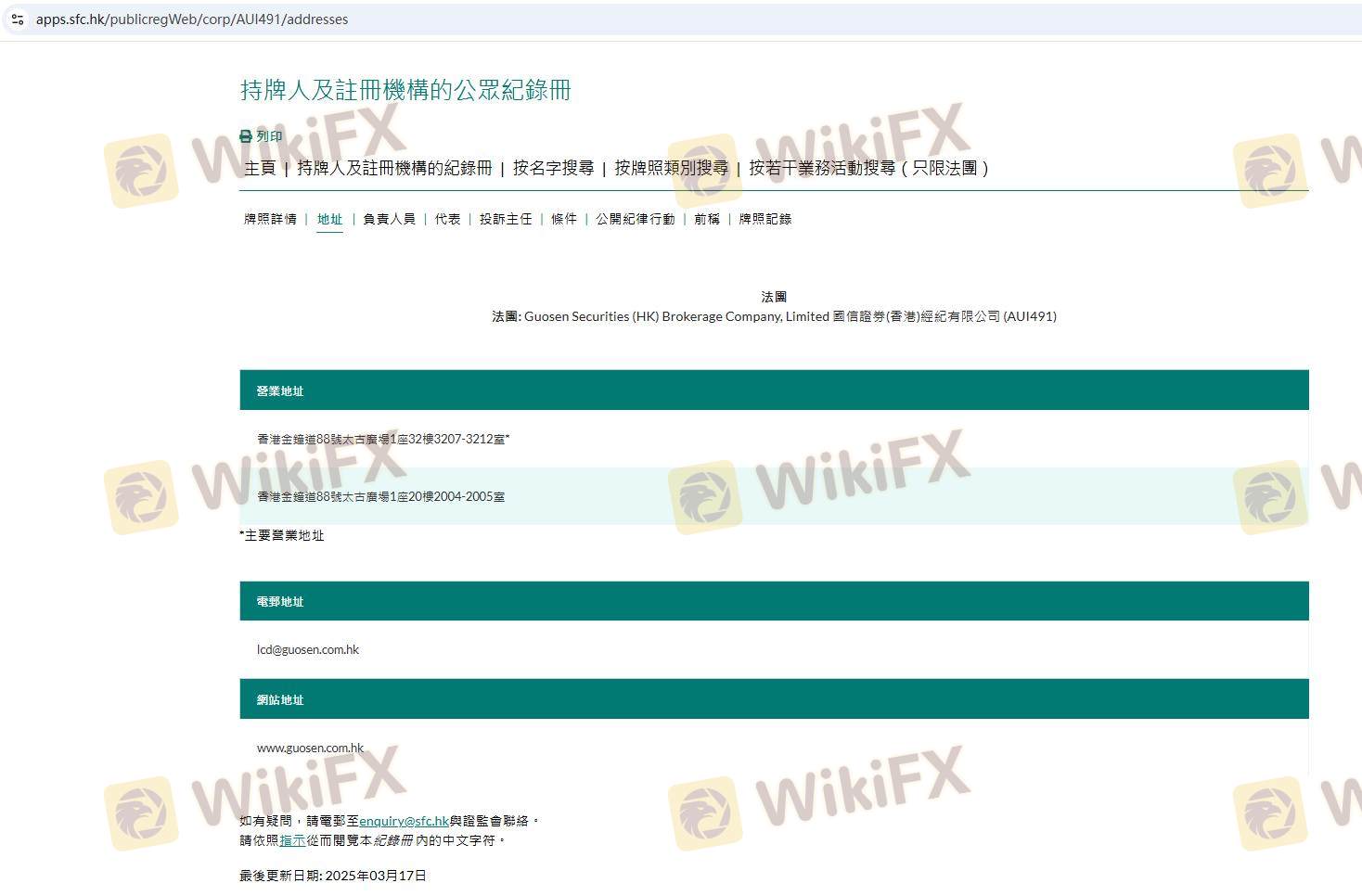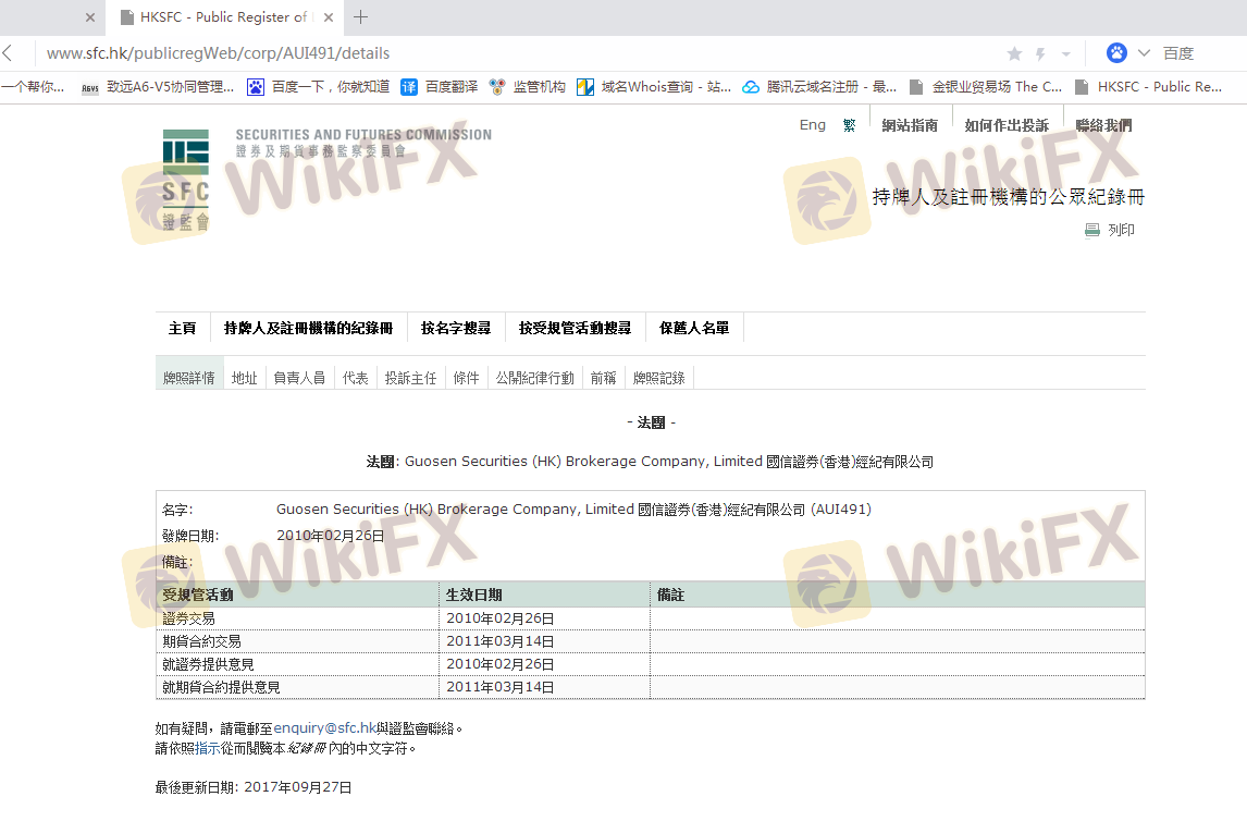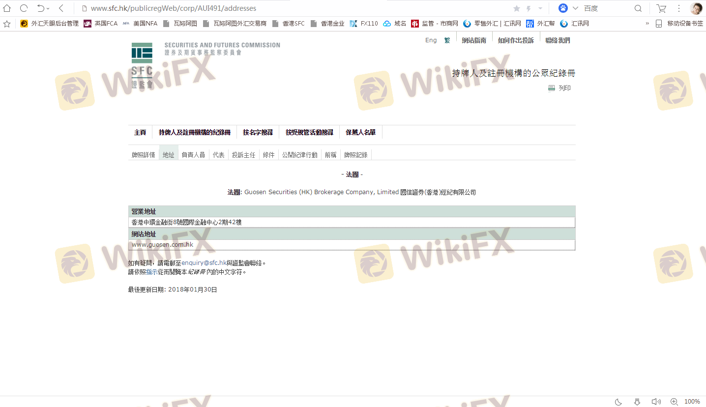 Mengenai legitimasi broker forex GUOSEN SECURITIES (HK), ia menyediakan Hong Kong SFC, dan (Kami juga melakukan investigasi lapangan terkait aspek keamanan.).