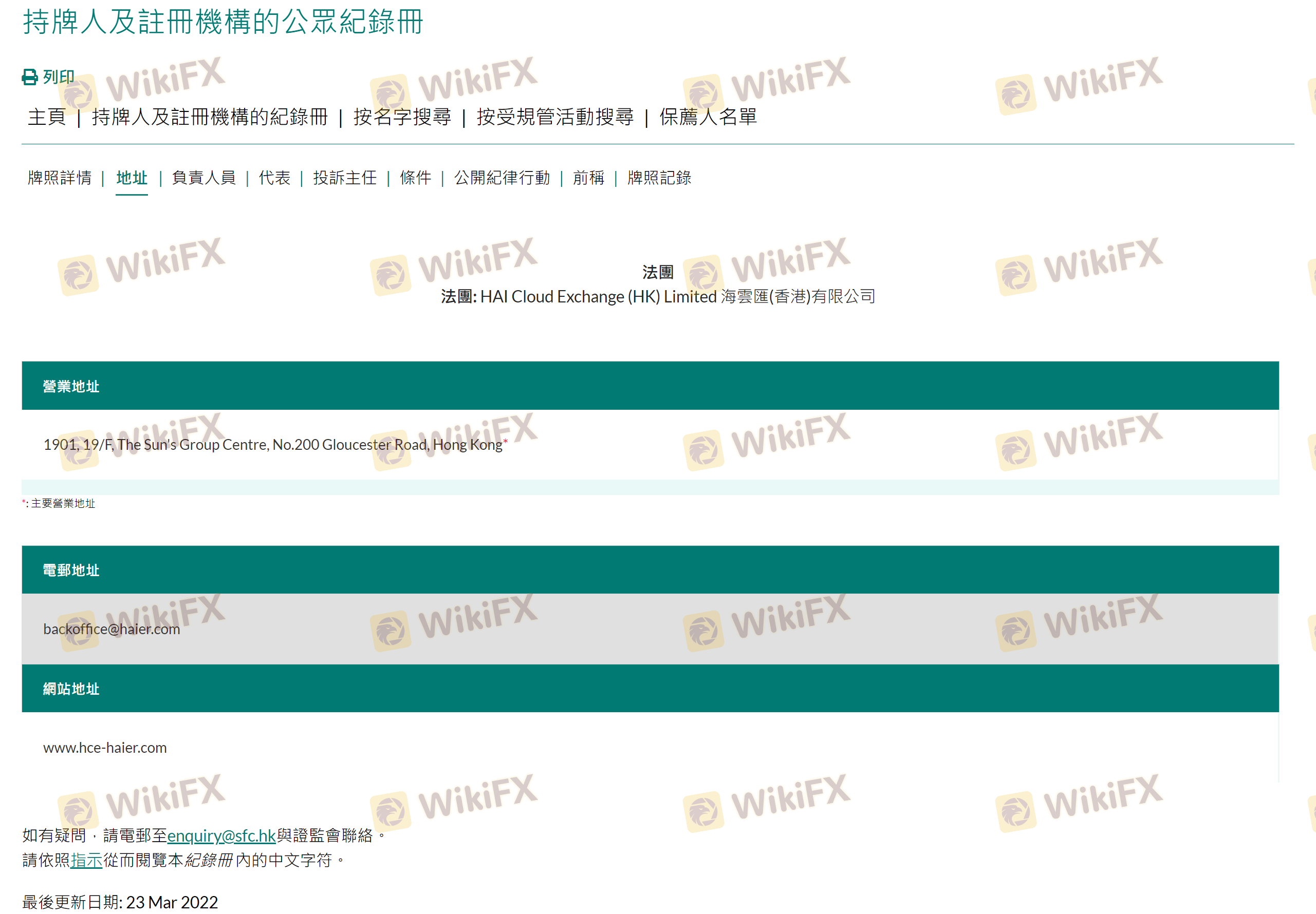 Mengenai legitimasi broker forex HAI CLOUD EXCHANGE, ia menyediakan Hong Kong SFC, dan (Kami juga melakukan investigasi lapangan terkait aspek keamanan.).