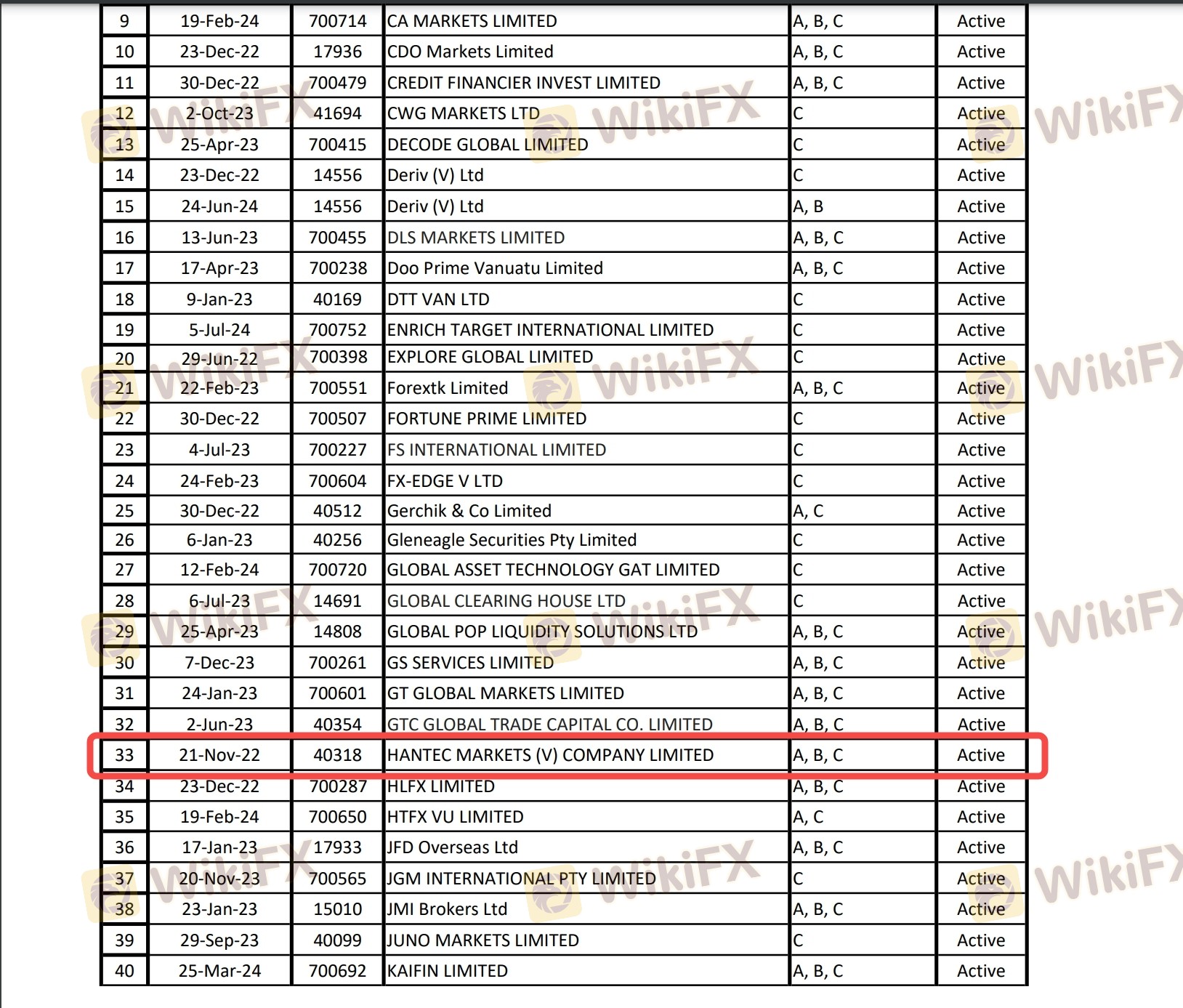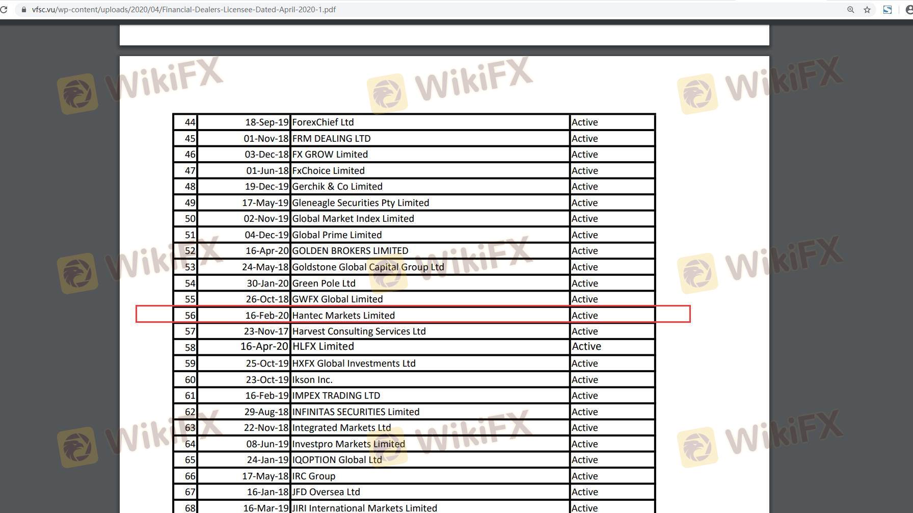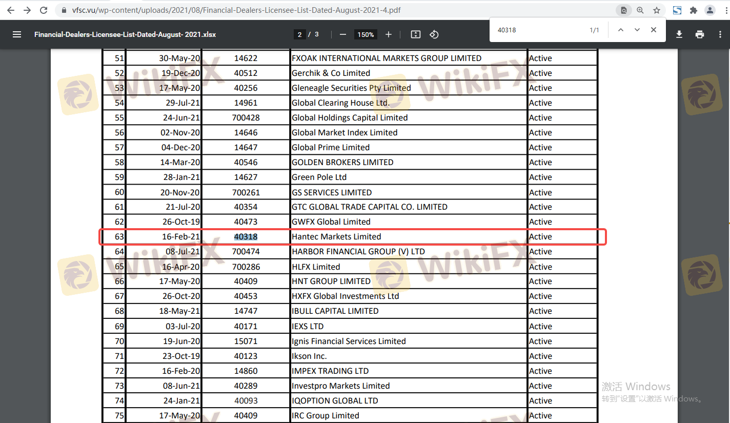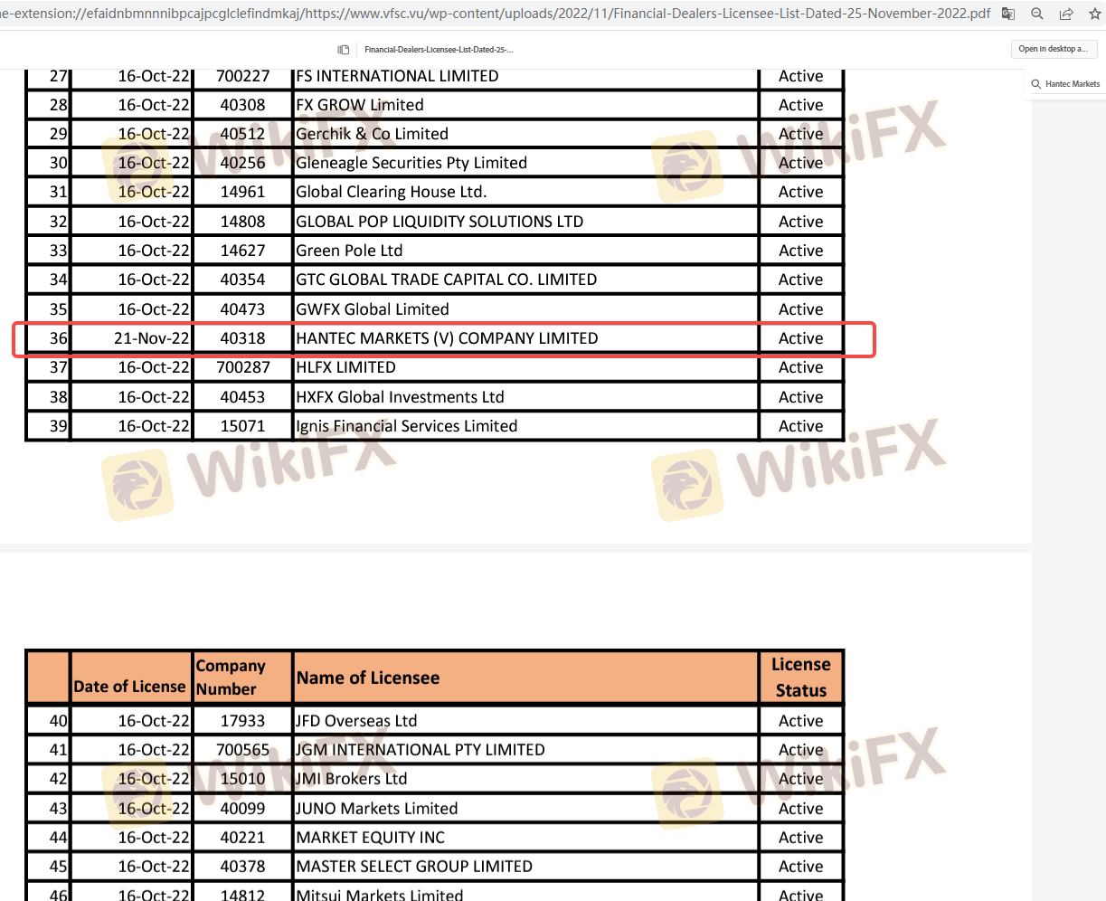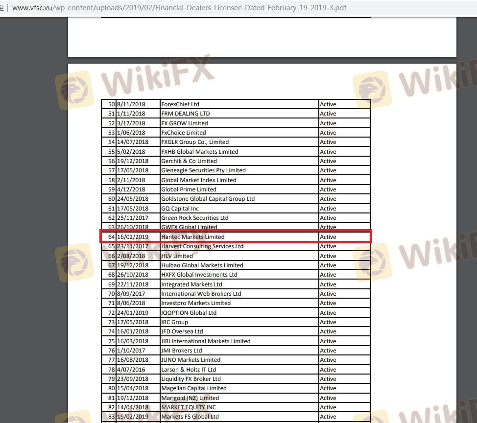 Kerangka regulasi yang mengelilingi seorang broker sangat penting untuk menilai keabsahan dan keamanannya. Hantec Financial mengklaim diatur oleh beberapa otoritas terkemuka, yang merupakan indikator positif bagi klien potensial. Berikut adalah ringkasan informasi regulasi Hantec Financial:
