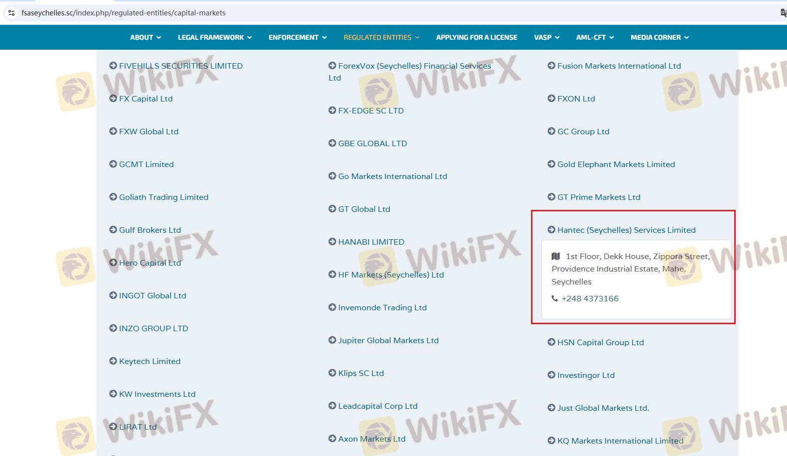 Mengenai legitimasi broker forex HANTEC FINANCIAL, ia menyediakan Australia ASIC, Vanuatu VFSC, Seychelles FSA, dan (Kami juga melakukan investigasi lapangan terkait aspek keamanan.).