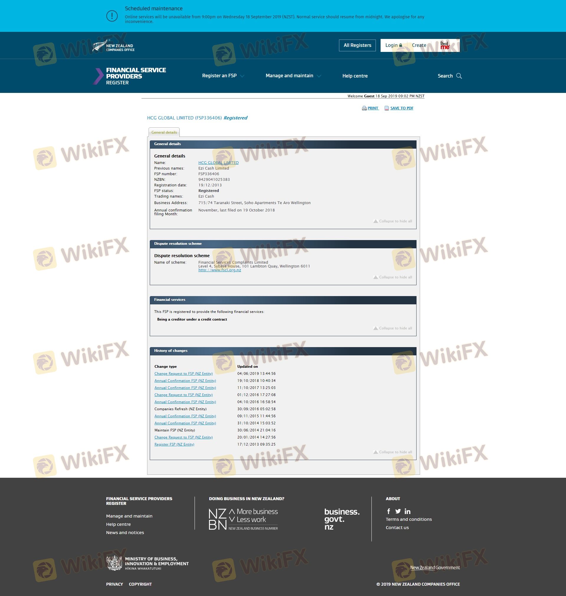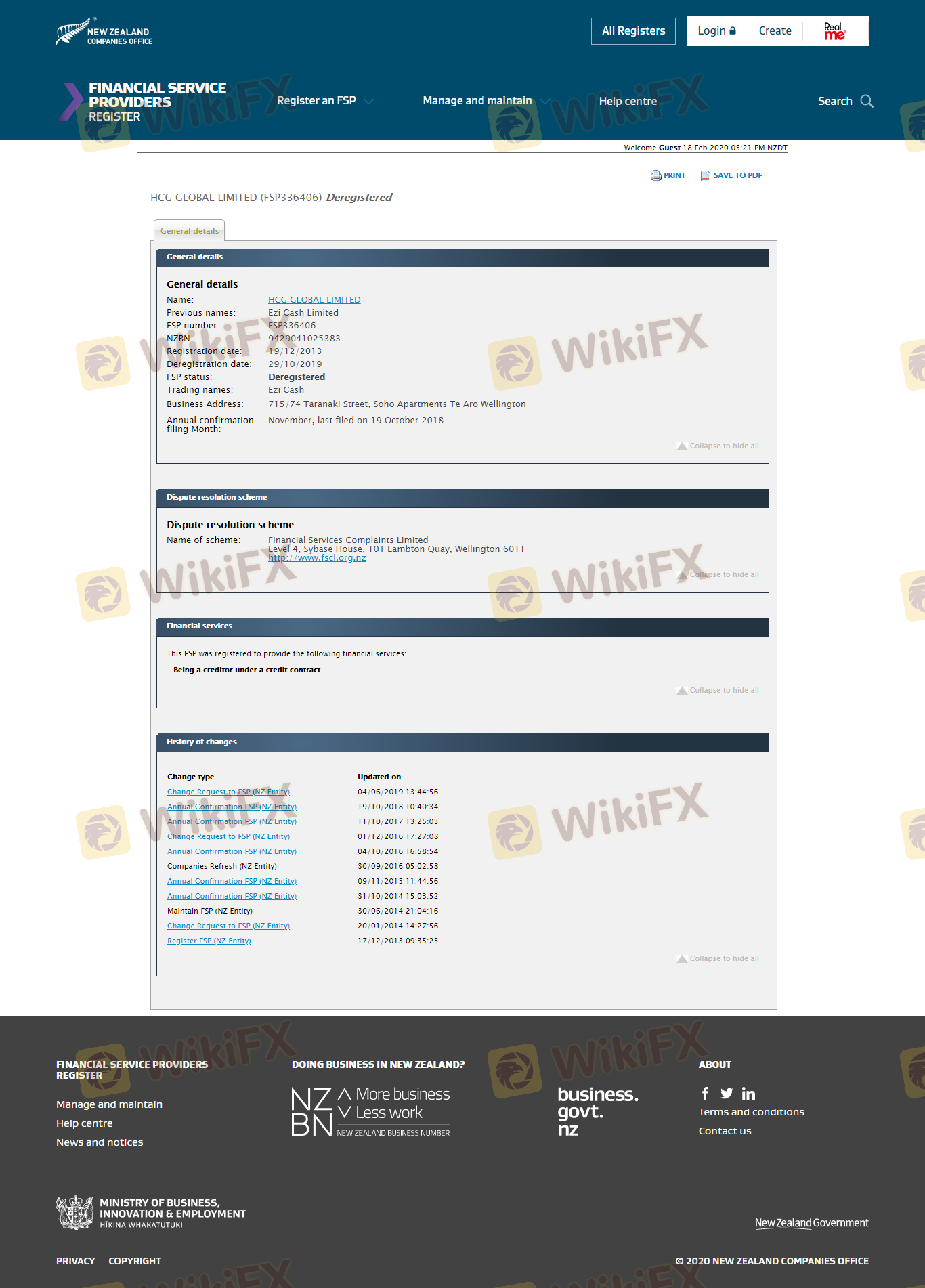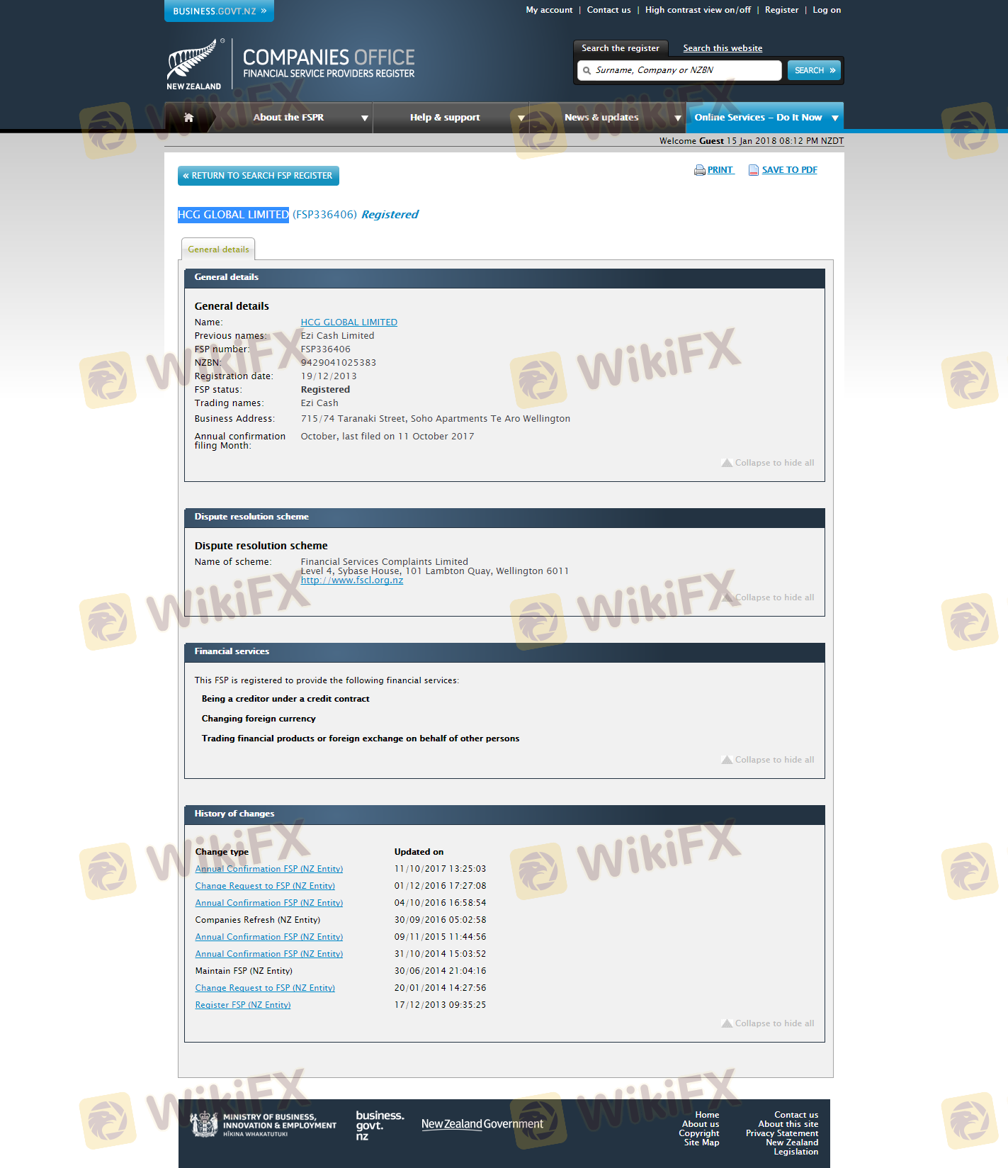 Status regulasi dari sebuah perantara sangat penting dalam menentukan legitimasinya dan keamanan dana trader. HCG terdaftar di Financial Service Providers Register (FSPR) di Selandia Baru, yang memberikan tingkat pengawasan. Berikut adalah ringkasan informasi regulasi HCG: