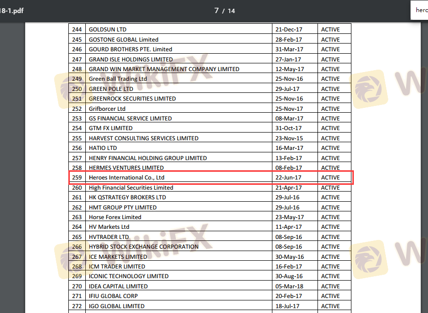 Heroes Forex didirikan pada tahun 2017 dan sejak itu bertujuan untuk menyediakan layanan perdagangan kepada pasar niche. Namun, informasi mengenai struktur kepemilikan perusahaan dan tim manajemennya sangat sedikit. Ketidaktransparanan ini menimbulkan sinyal bahaya tentang kredibilitas broker. Pemeriksaan latar belakang perusahaan yang teliti dapat mengungkap banyak hal tentang legitimasinya.