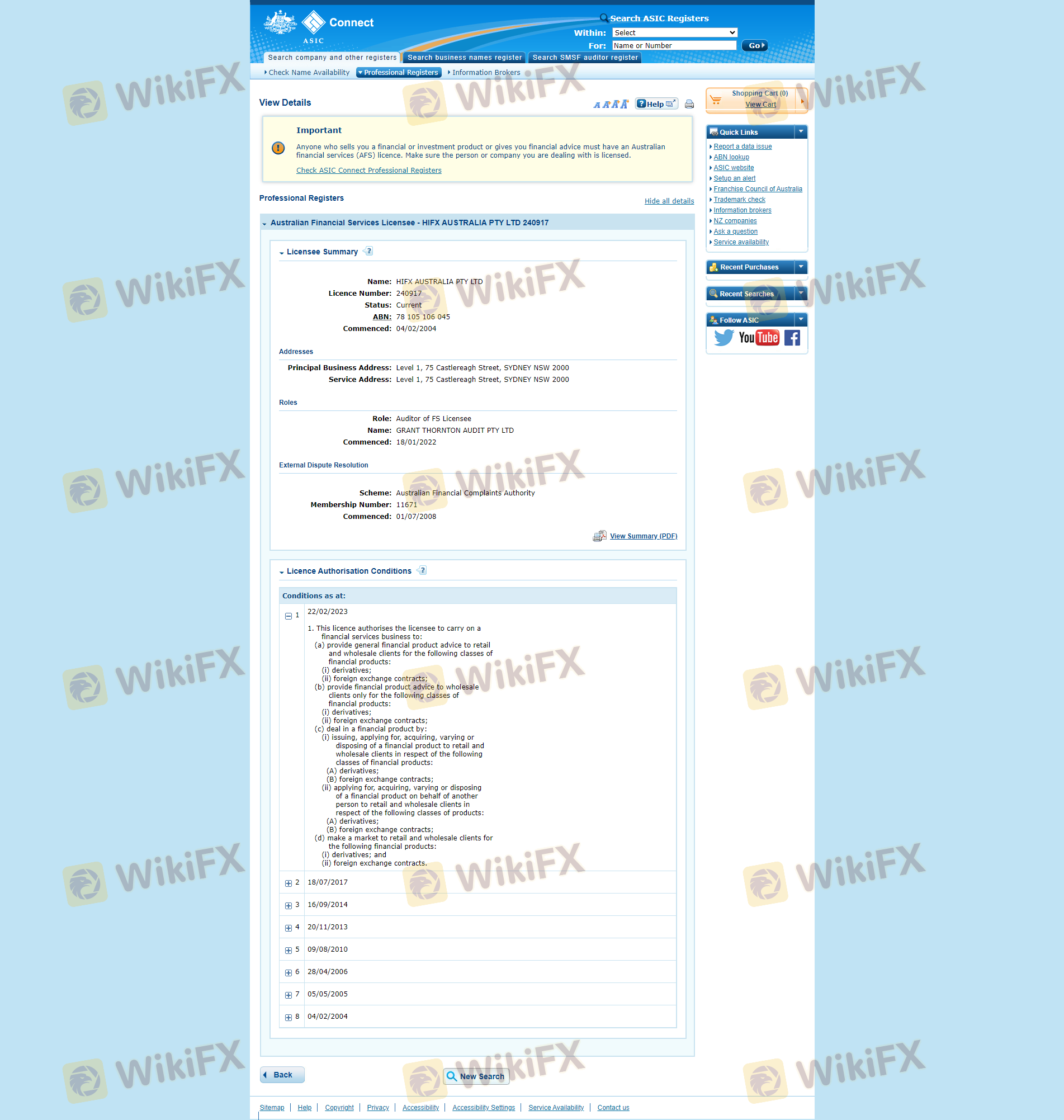 | Australian Securities and Investments Commission (ASIC) | 240914, 240917 | Australia | Terverifikasi |