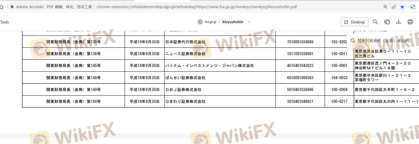 | Japan Financial Services Agency | 関東 財務 局長 ( 金 商 ) 第 150 号 | Jepang | Terverifikasi |