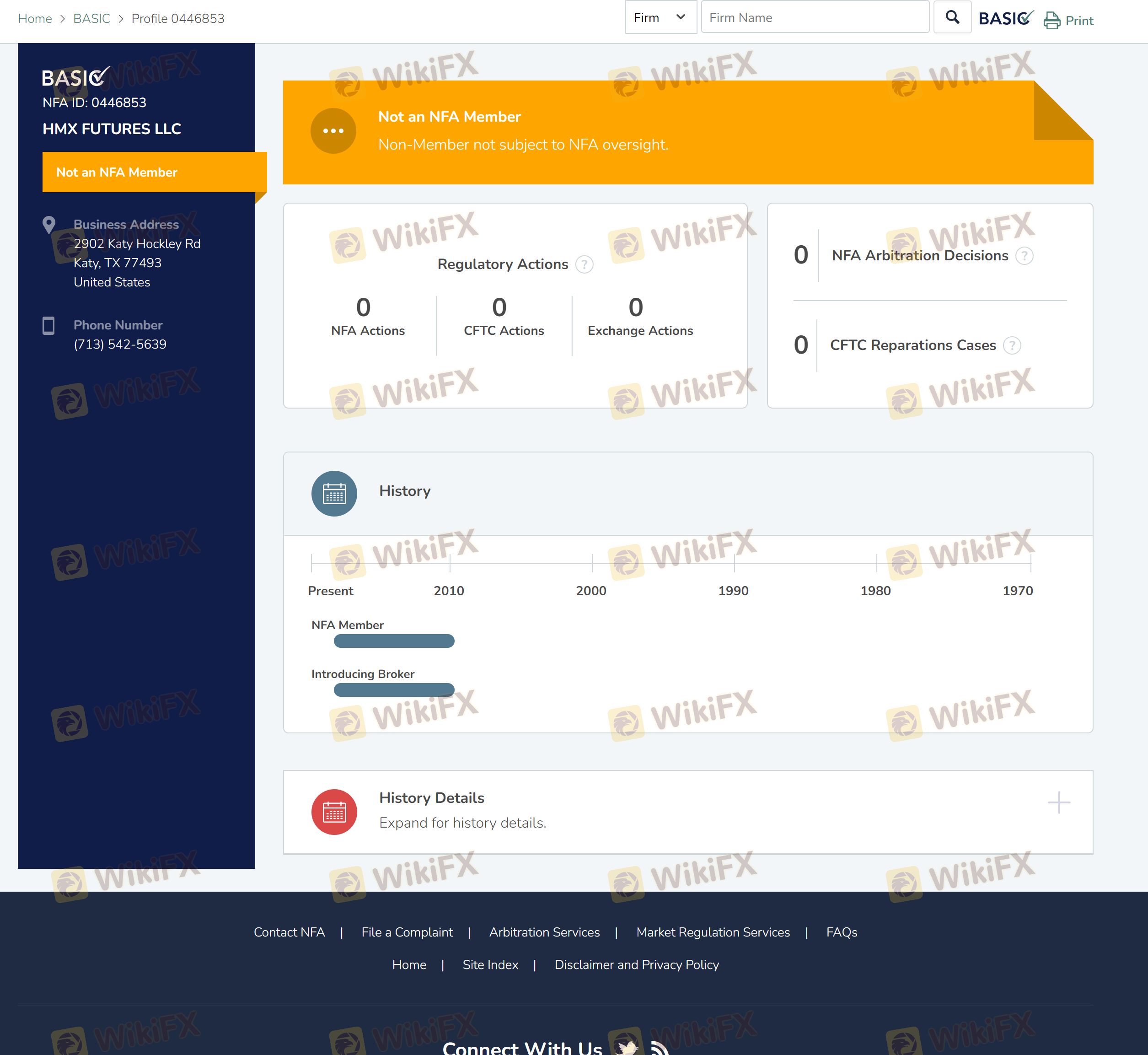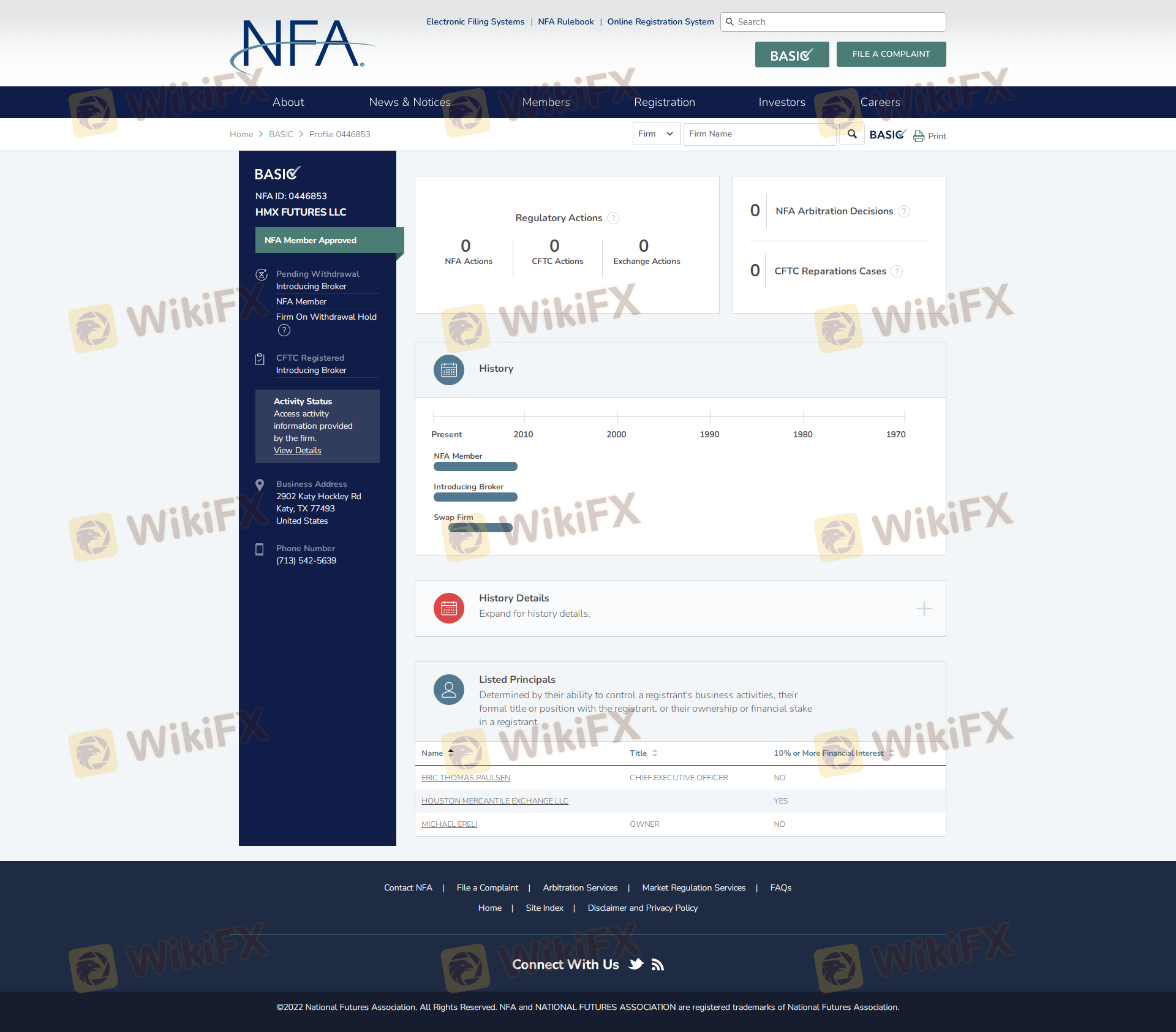 Status regulasi broker adalah salah satu faktor paling kritis dalam menentukan legitimasinya. HMX mengklaim beroperasi di bawah pengawasan National Futures Association (NFA), sebuah lembaga regulasi yang diakui di Amerika Serikat. Namun, beberapa ulasan telah menandai HMX sebagai "klon mencurigakan," menimbulkan kekhawatiran tentang kepatuhan regulasinya. Berikut adalah ringkasan informasi regulasi HMX: