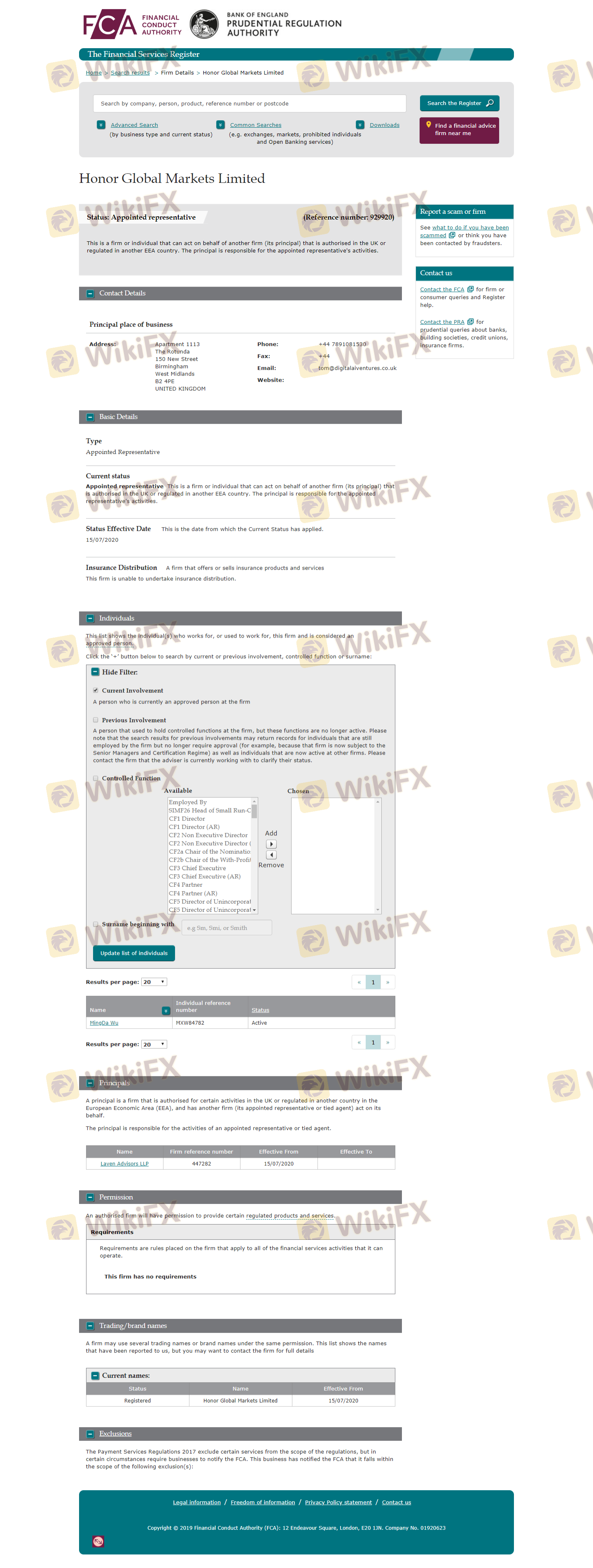 Mengenai legitimasi broker forex Honor Global, ia menyediakan Kerajaan Inggris FCA, dan .
