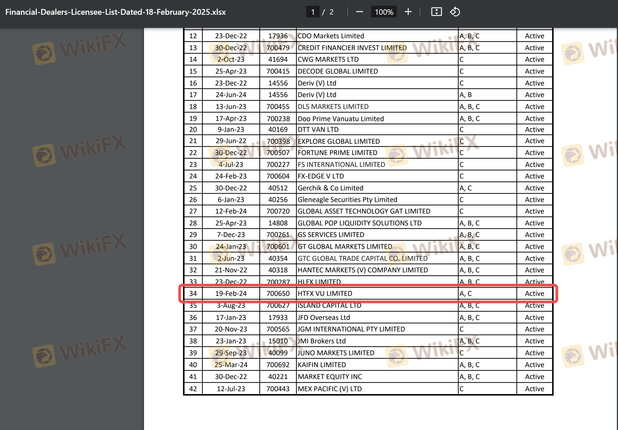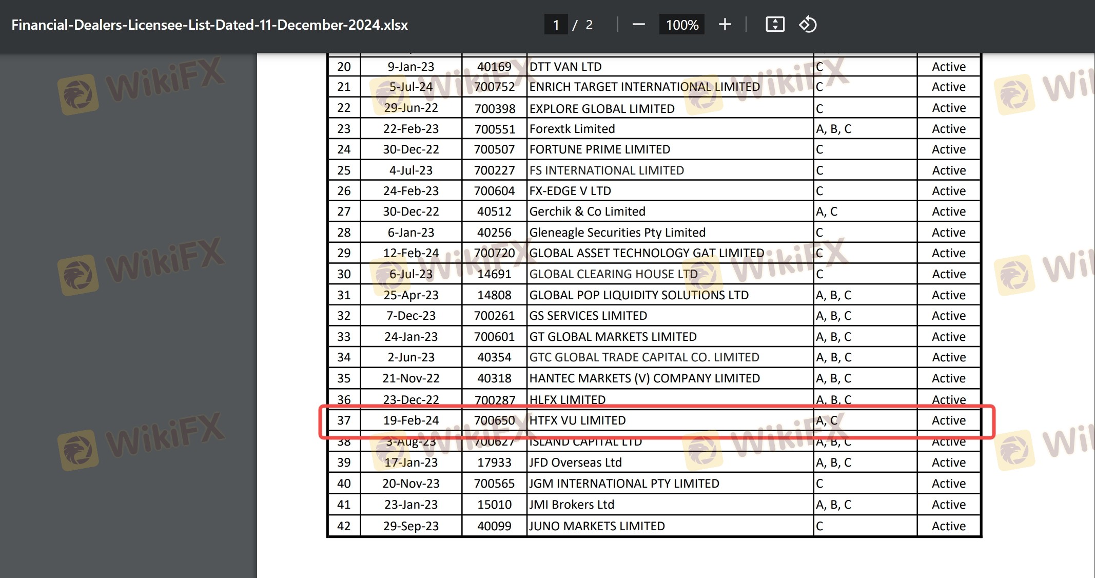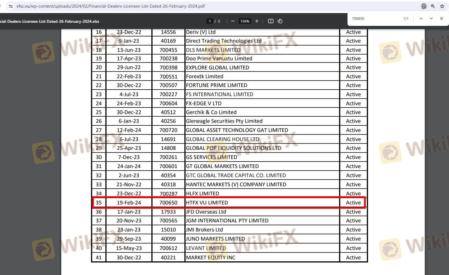 Mengenai legitimasi broker forex HTFX, ia menyediakan Vanuatu VFSC, dan (Kami juga melakukan investigasi lapangan terkait aspek keamanan.).