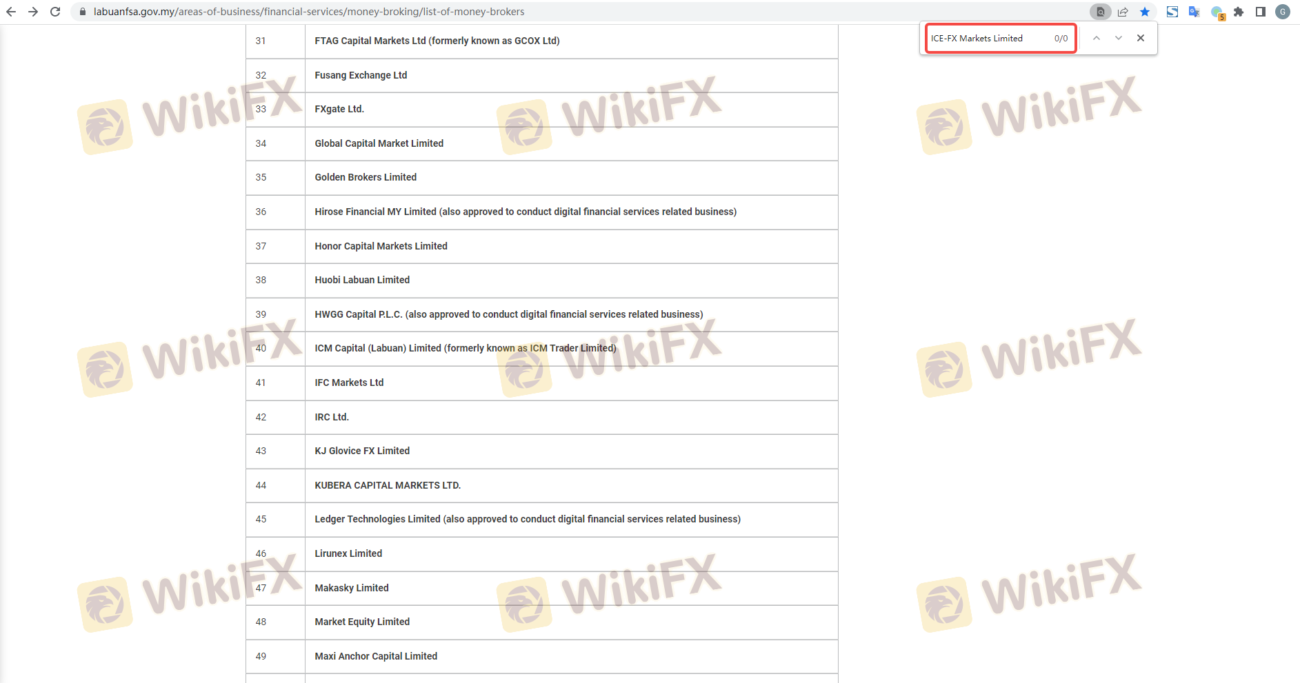 Lingkungan regulasi merupakan faktor kritis dalam menilai keamanan sebuah broker forex. Ice FX diatur oleh Labuan Financial Services Authority (LFSA) di Malaysia, yang dikenal memiliki kerangka regulasi yang kurang ketat dibandingkan regulator tingkat satu seperti FCA (UK) atau ASIC (Australia).