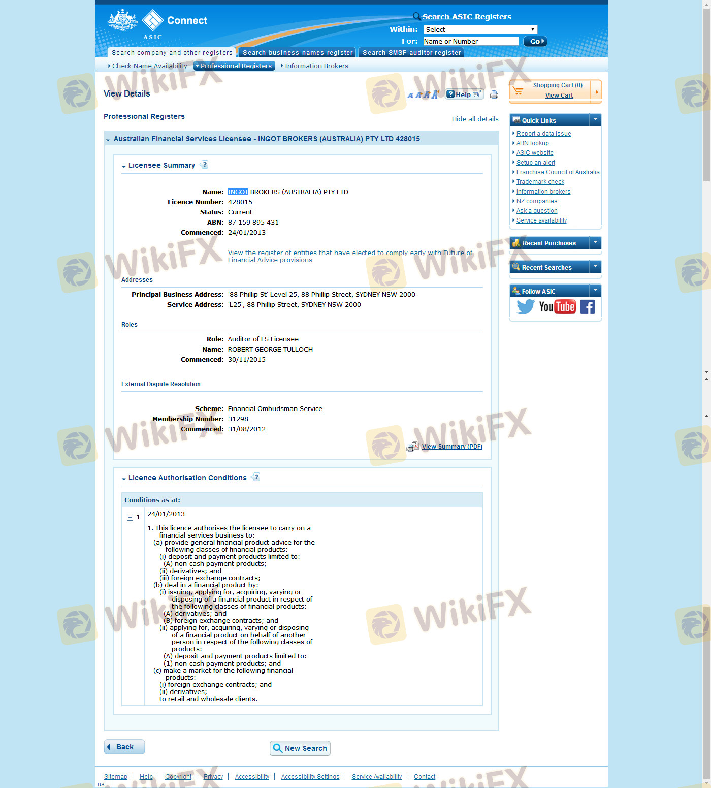 Mengenai legitimasi broker forex INGOT , ia menyediakan Australia ASIC, Seychelles FSA, dan .
