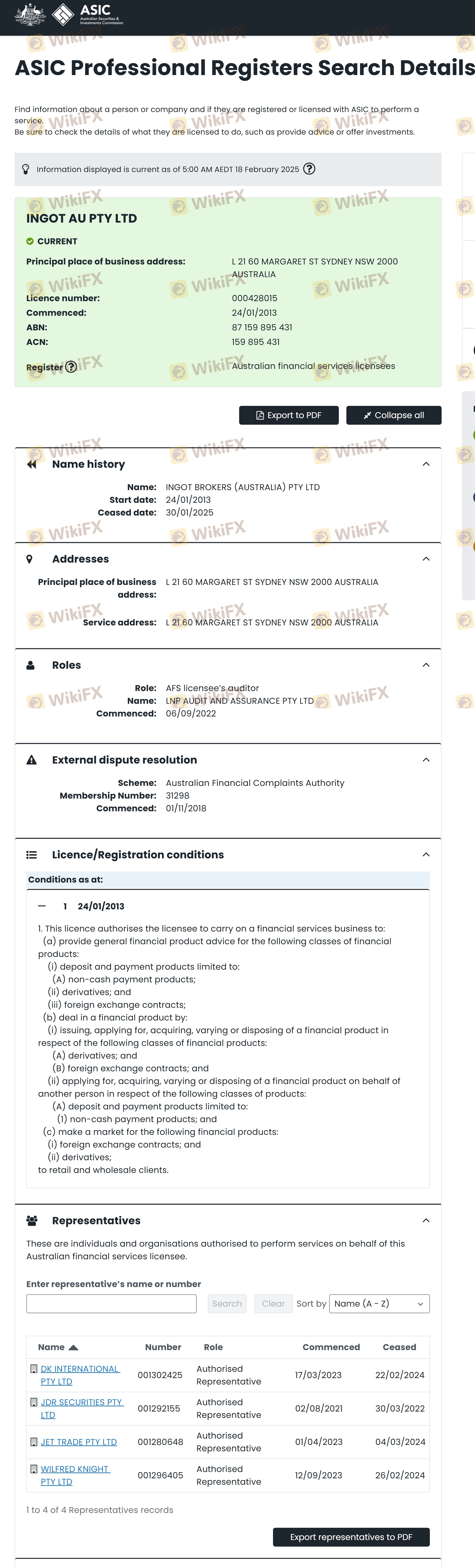 Pengawasan ASIC memastikan bahwa Ingot Brokers mematuhi persyaratan modal yang ketat dan prosedur internal, termasuk manajemen risiko dan audit rutin. Kualitas regulasi ini sangat berkontribusi pada kredibilitas pialang. Namun, kehadiran lisensi FSA yang berbasis di luar negeri dapat menimbulkan beberapa risiko, karena regulasi luar negeri biasanya memberikan perlindungan investor yang lebih sedikit dibandingkan dengan rekan domestiknya. Secara keseluruhan, Ingot Brokers tampaknya merupakan entitas yang sah di bawah regulasi ASIC, tetapi calon klien harus berhati-hati dengan implikasi pengawasan FSA.