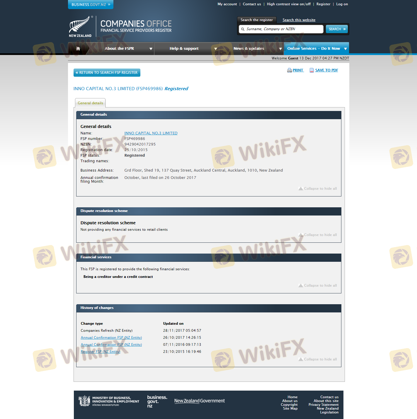 Mengenai legitimasi broker forex INNO, ia menyediakan Selandia Baru FSPR, dan .