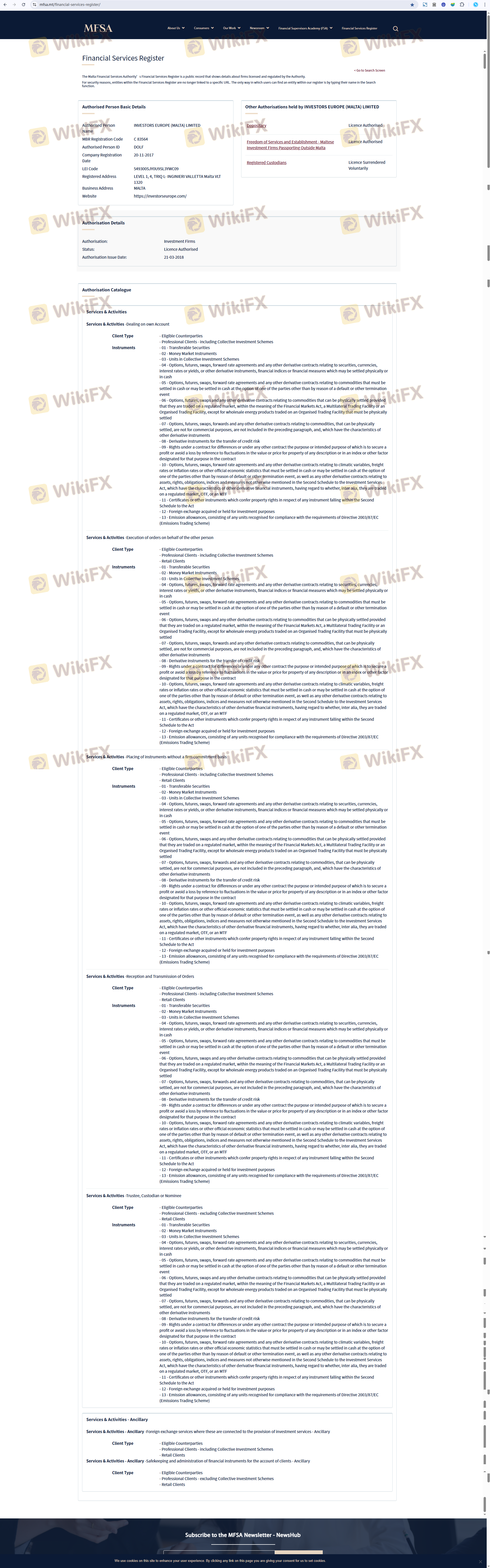 Mengenai legitimasi broker forex Investors Europe, ia menyediakan Malta MFSA, dan .