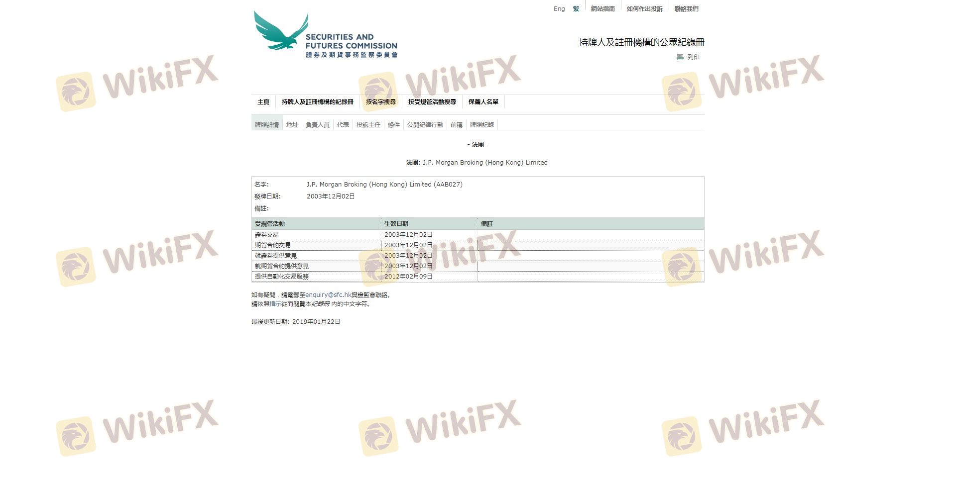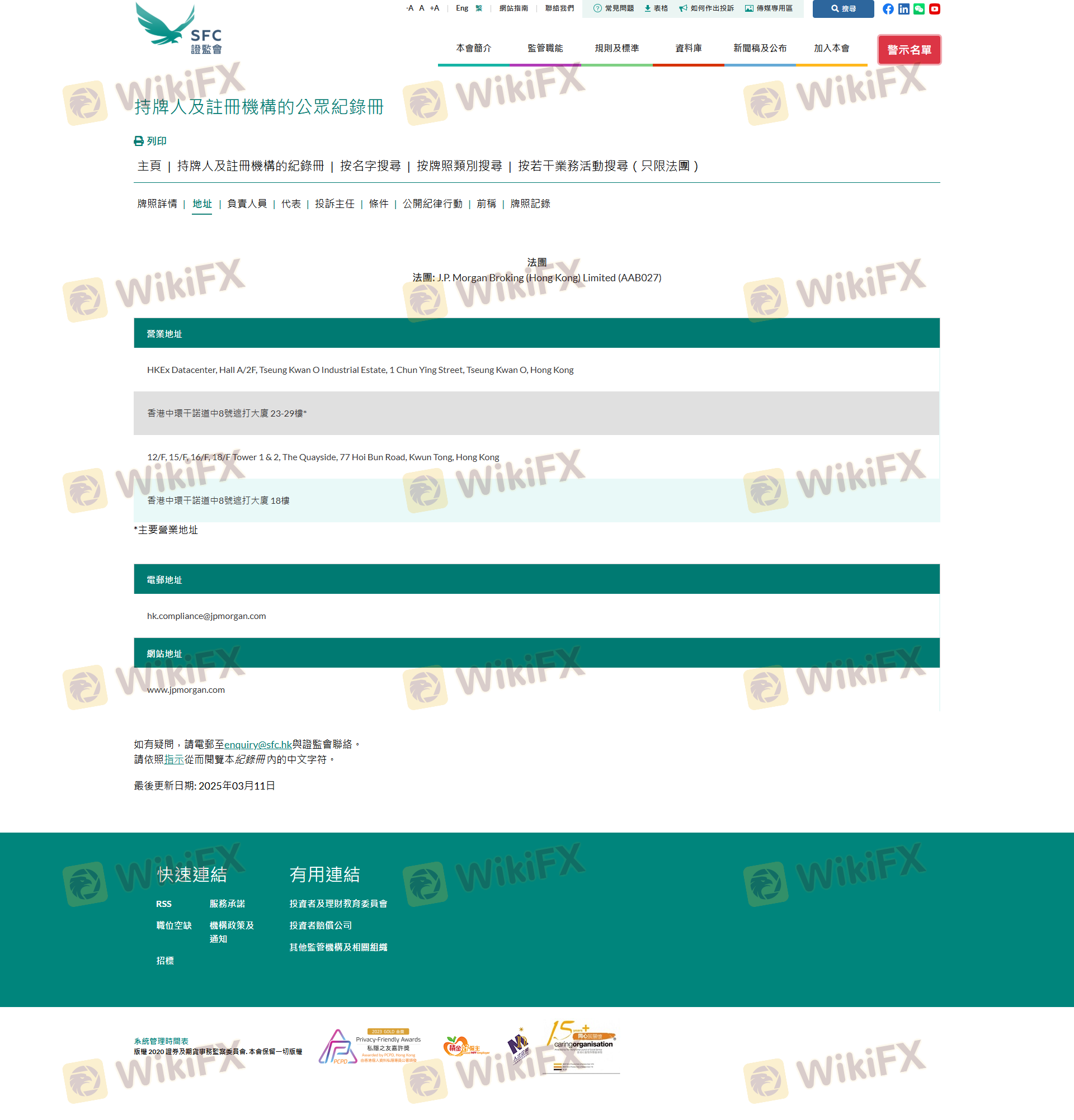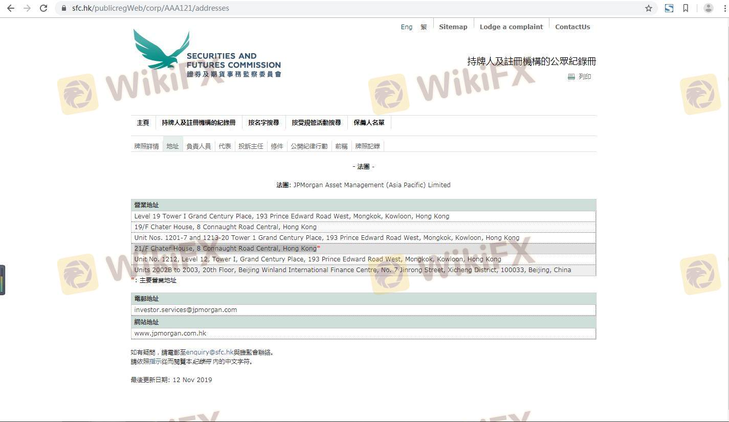 Mengenai legitimasi broker forex J.P. Morgan, ia menyediakan Hong Kong SFC, Hong Kong SFC, Malaysia LFSA, dan (Kami juga melakukan investigasi lapangan terkait aspek keamanan.).