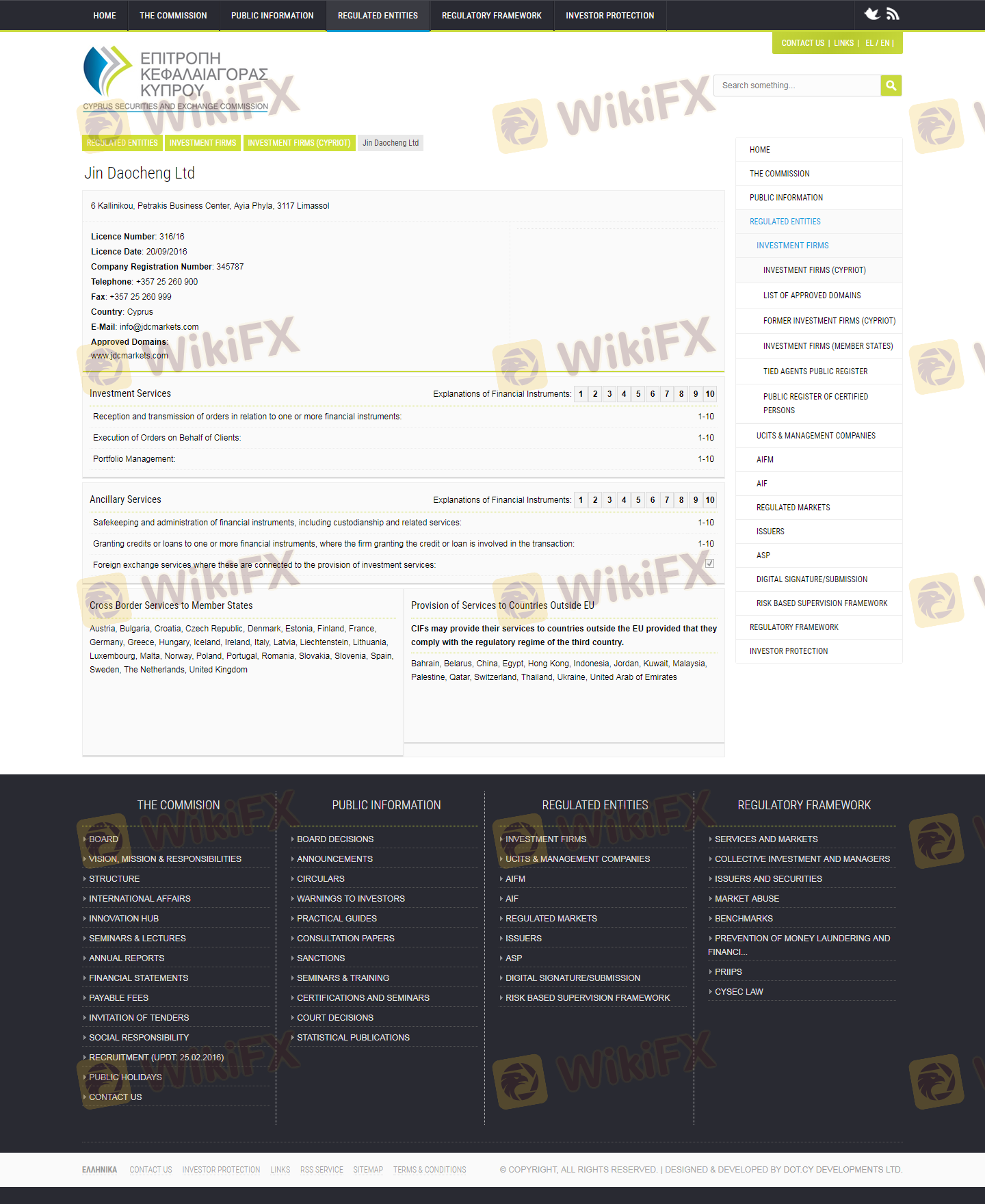 Mengenai legitimasi broker forex JDC Markets, ia menyediakan Siprus CYSEC, dan (Kami juga melakukan investigasi lapangan terkait aspek keamanan.).