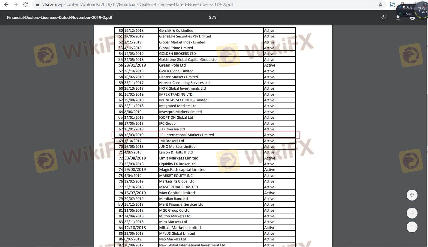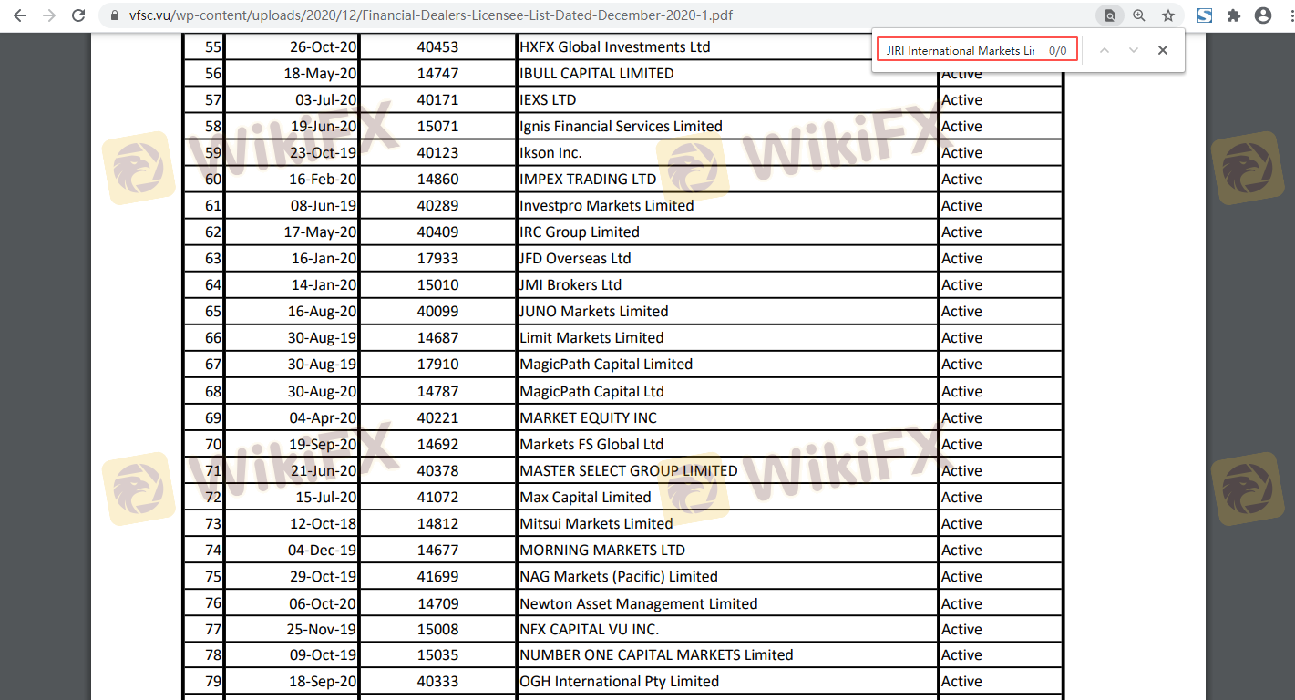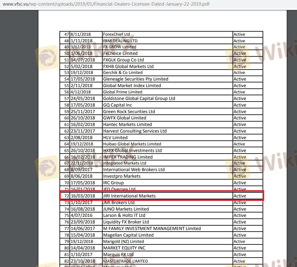Mengenai legitimasi broker forex JIRI Forex, ia menyediakan Vanuatu VFSC, dan .