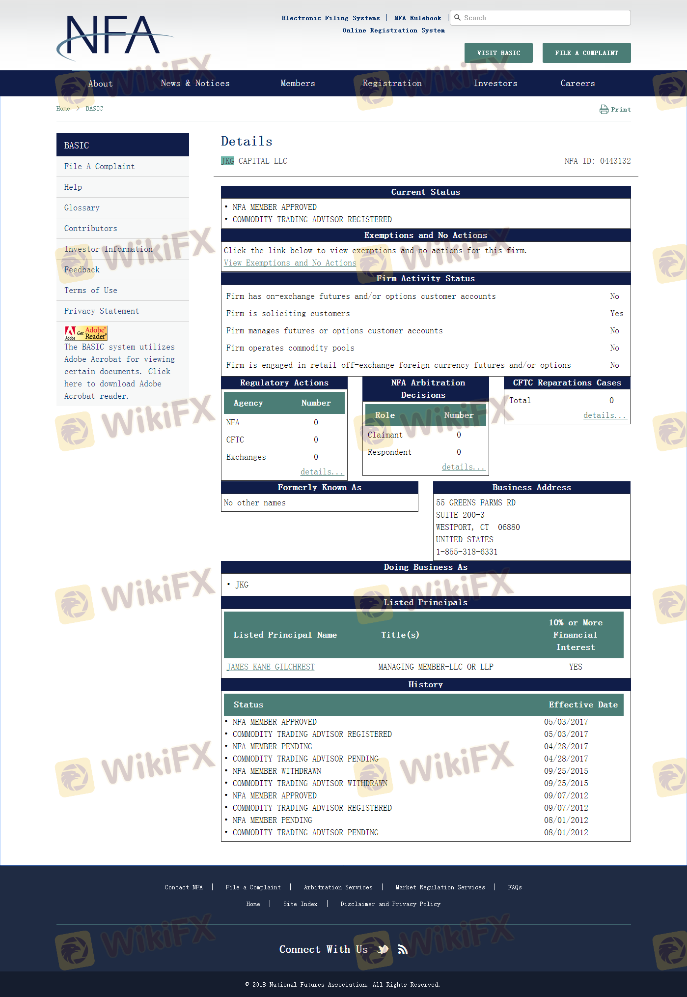 Mengenai legitimasi broker forex JKG, ia menyediakan Amerika Serikat NFA, dan (Kami juga melakukan investigasi lapangan terkait aspek keamanan.).