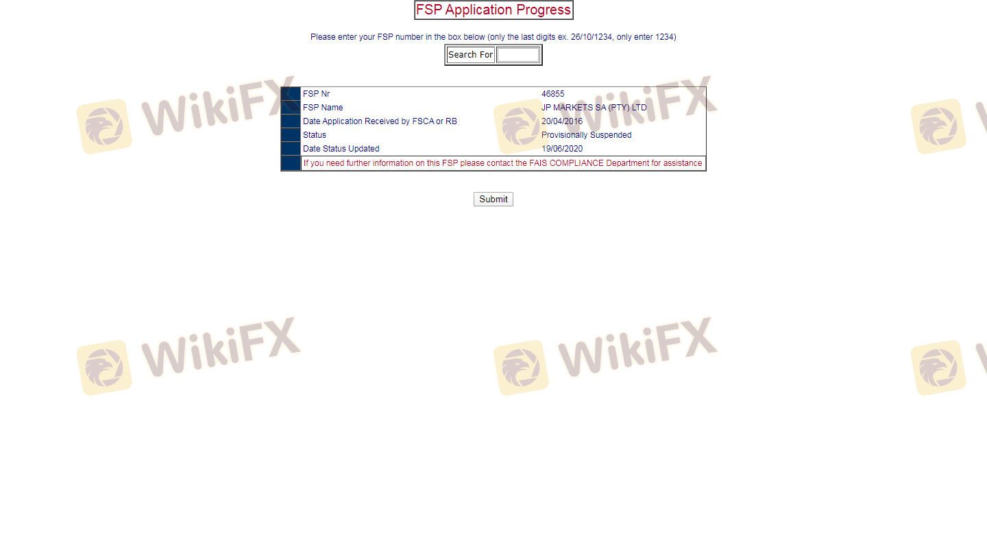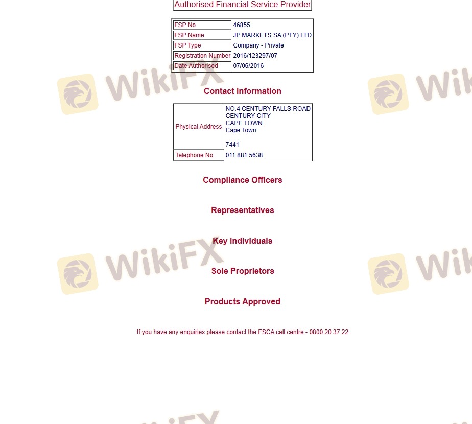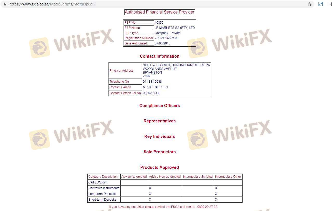 Mengenai legitimasi broker forex JP Markets, ia menyediakan Afrika Selatan FSCA, dan .