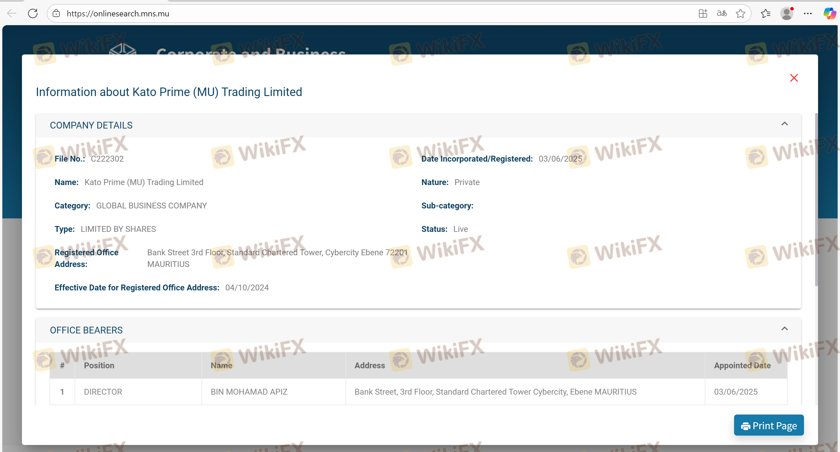 Kato Prime dimiliki dan dioperasikan oleh Kato Prime Belize Limited, yang terdaftar di Belize. Sejarah perusahaan relatif singkat, didirikan pada 2021. Struktur kepemilikan dan detail tim manajemen tidak diungkapkan secara luas di situs web mereka, yang memunculkan pertanyaan tentang transparansi dan akuntabilitas.
