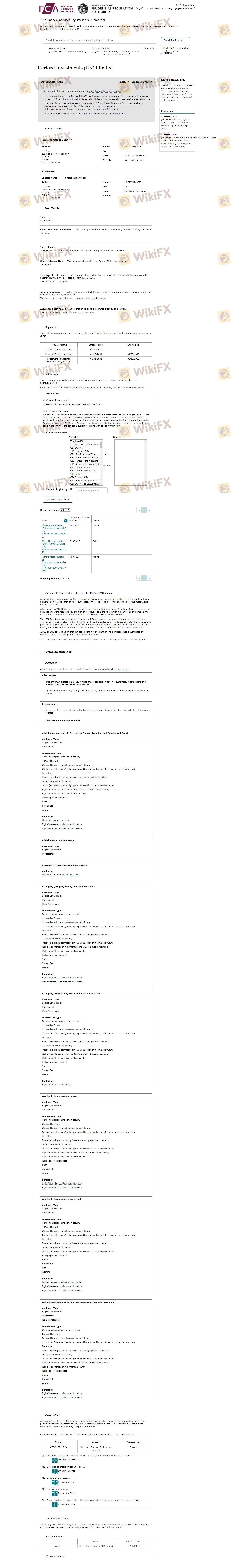 Status regulasi broker sangat penting untuk menentukan kredibilitas dan legitimasi operasionalnya. Kerford UK mengklaim diatur oleh Financial Conduct Authority (FCA) di Inggris, yang dikenal dengan standar regulasi yang ketat. FCA memastikan bahwa broker mematuhi praktik keuangan yang ketat, sehingga melindungi kepentingan para trader. Berikut adalah ringkasan informasi regulasi Kerford UK:
