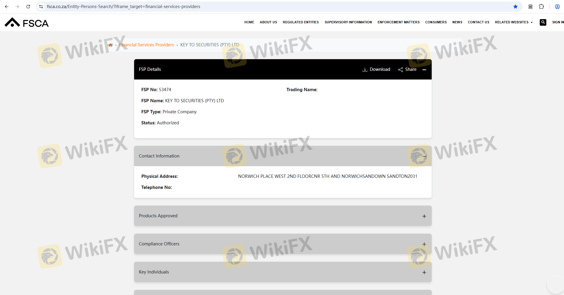 Mengenai legitimasi broker forex KEY TO SECURITIES, ia menyediakan Afrika Selatan FSCA, dan .