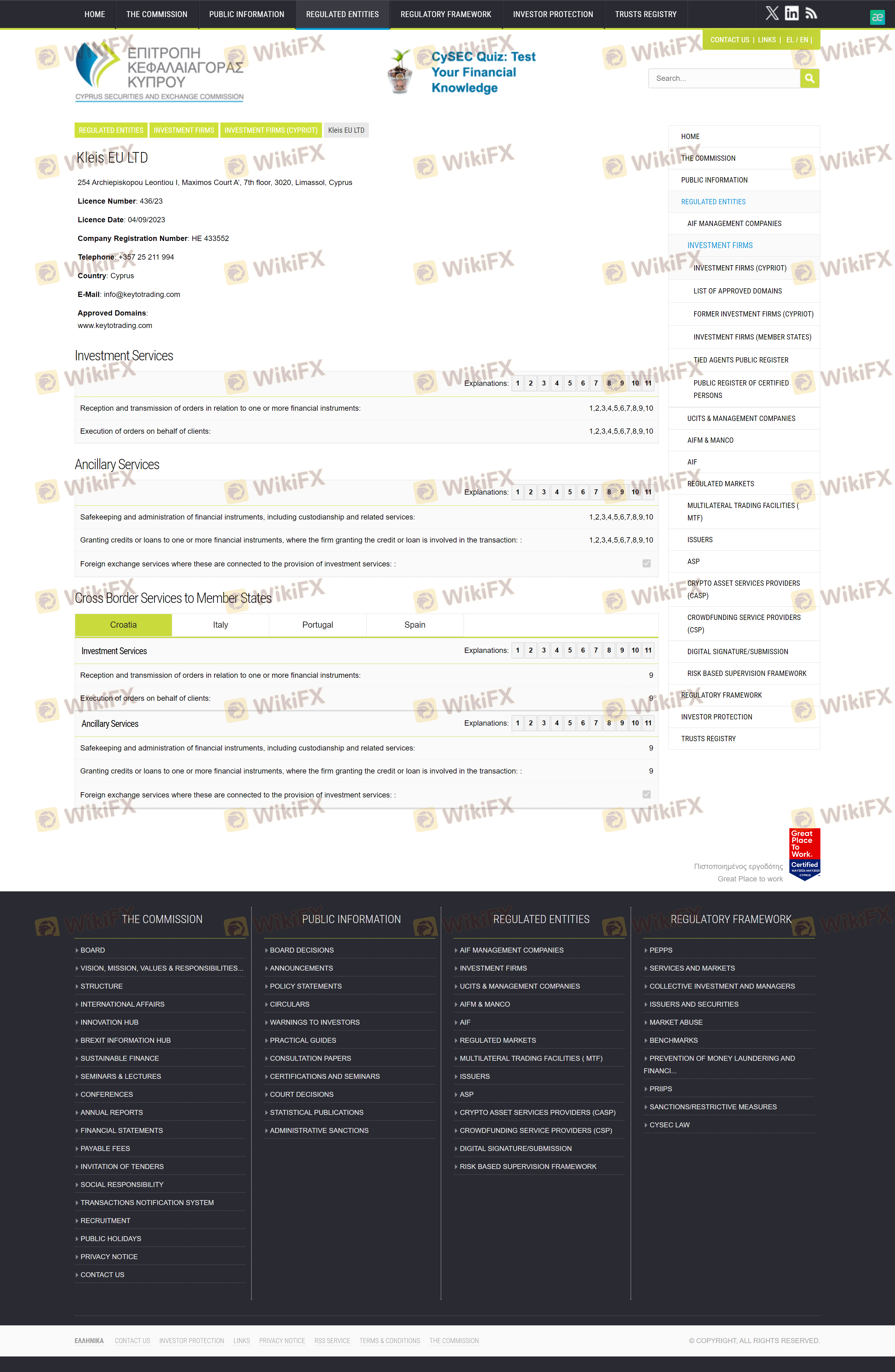Mengenai legitimasi broker forex KEY TO TRADING, ia menyediakan Siprus CYSEC, dan (Kami juga melakukan investigasi lapangan terkait aspek keamanan.).