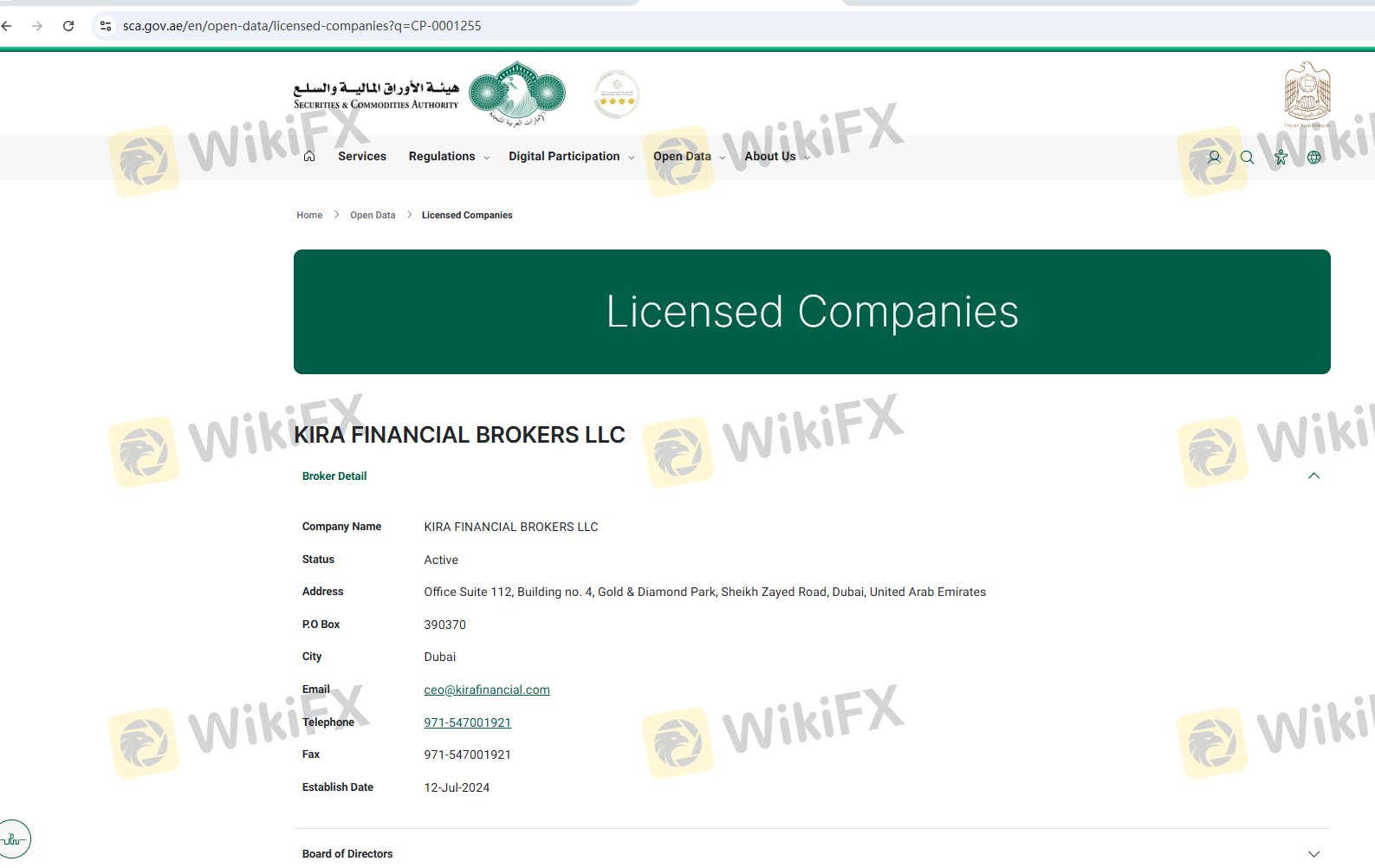 Mengenai legitimasi broker forex KIRA, ia menyediakan Uni Emirat Arab SCA, dan .