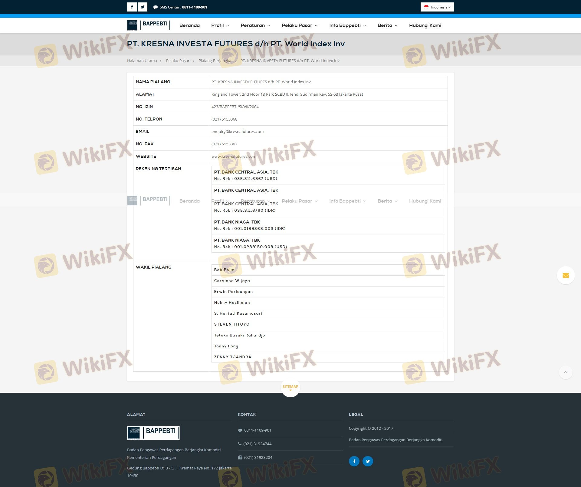 Mengenai legitimasi broker forex Kresna Futures, ia menyediakan Indonesia BAPPEBTI, dan (Kami juga melakukan investigasi lapangan terkait aspek keamanan.).