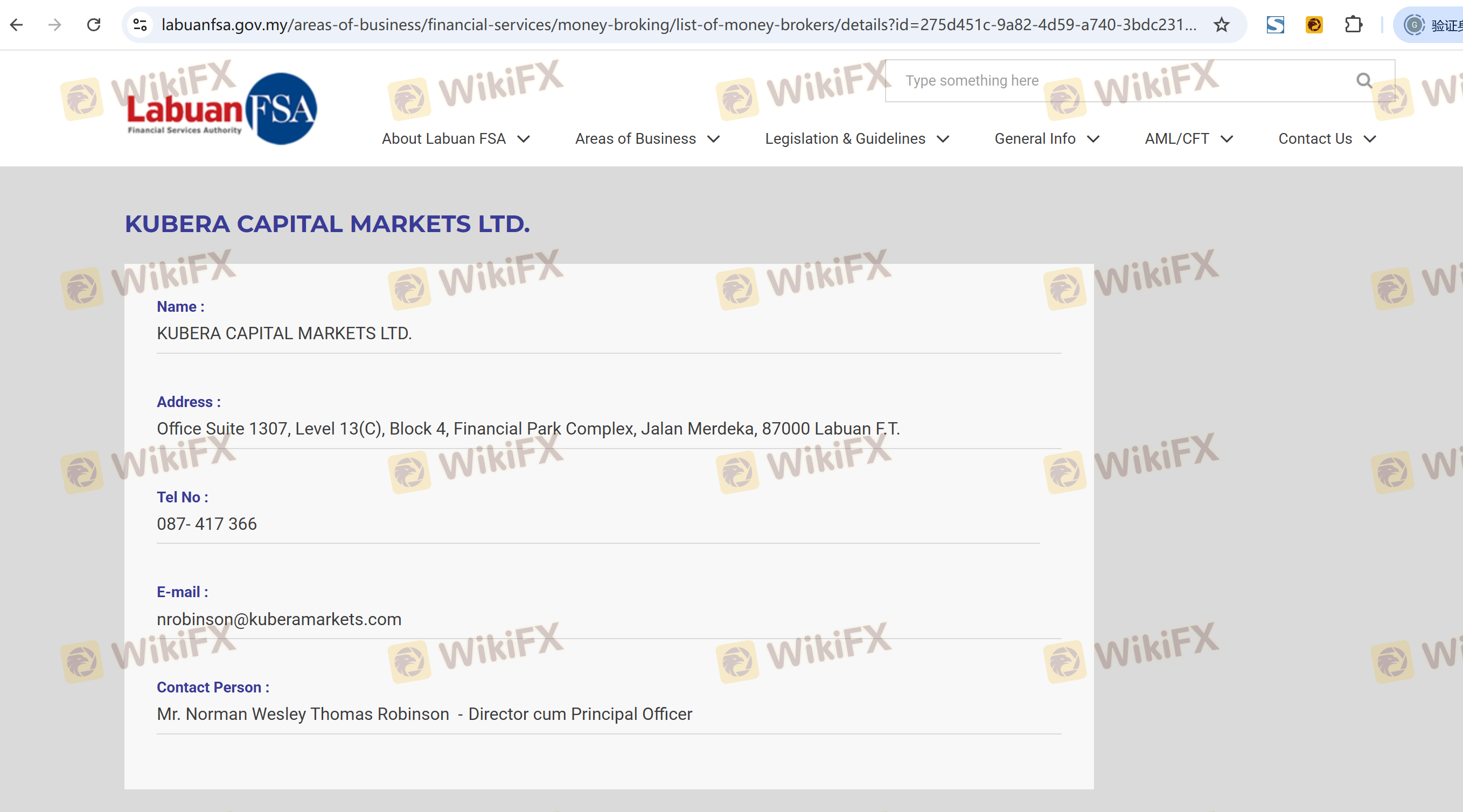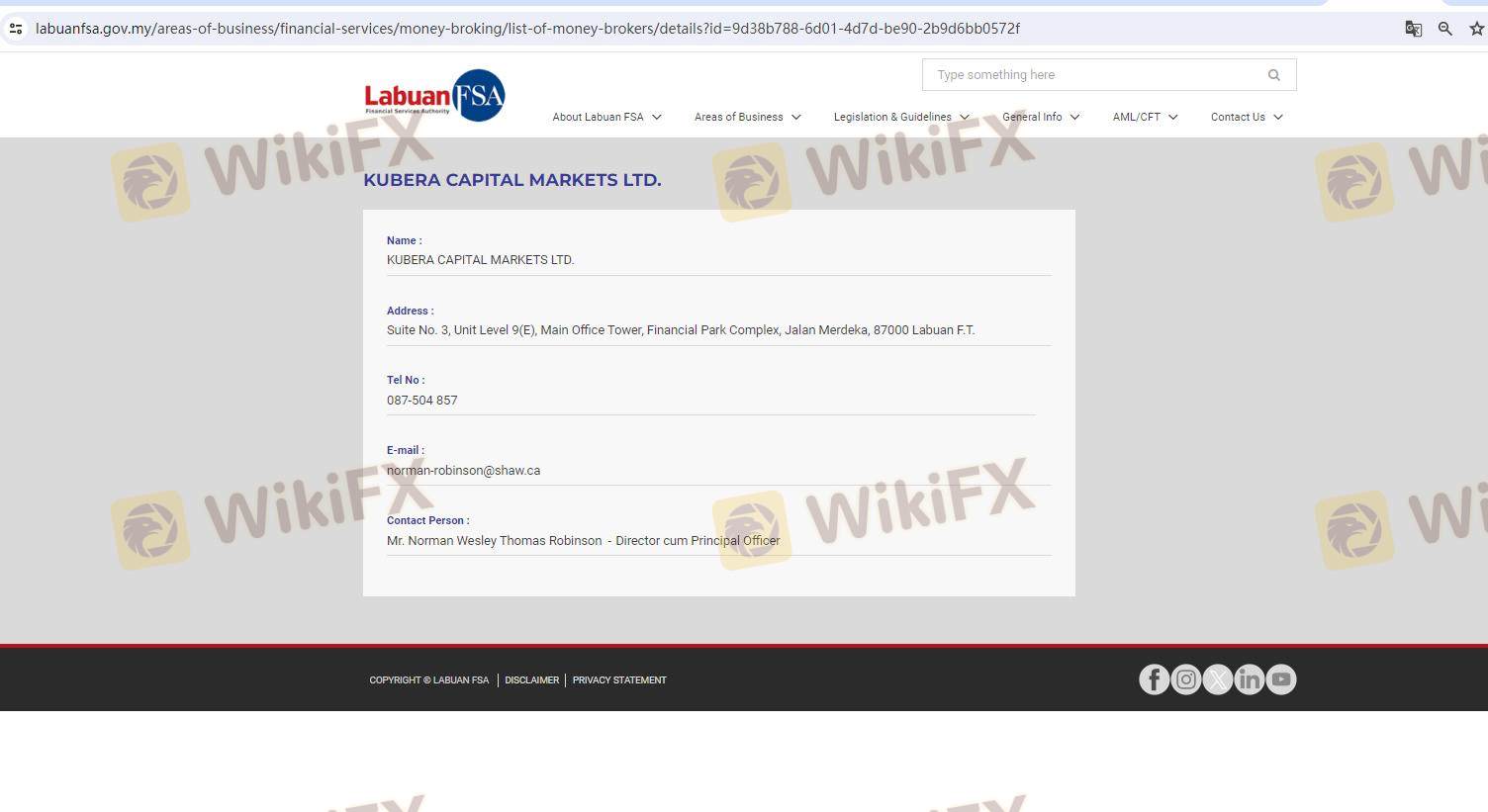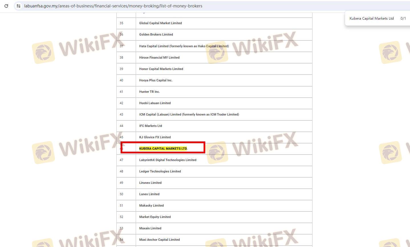 Status regulasi broker adalah faktor kritis dalam menentukan legitimasinya. Broker yang diatur dengan baik biasanya tunduk pada pengawasan ketat, memastikan bahwa mereka mematuhi standar industri dan melindungi dana klien. Kubera Capital Markets Ltd beroperasi di bawah yurisdiksi Labuan, Malaysia, tetapi belum sepenuhnya dilisensikan oleh Labuan Financial Services Authority (LFSA). Alih-alih, ia dikategorikan sebagai "klon mencurigakan," yang menimbulkan kekhawatiran serius mengenai legitimasinya.