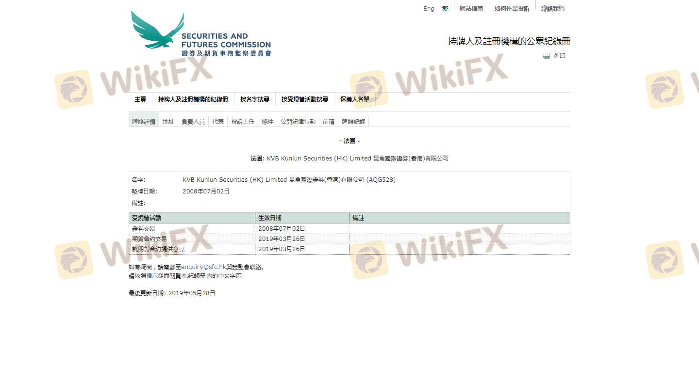 Mengenai legitimasi broker forex KVB Kunlun, ia menyediakan Hong Kong SFC, dan (Kami juga melakukan investigasi lapangan terkait aspek keamanan.).