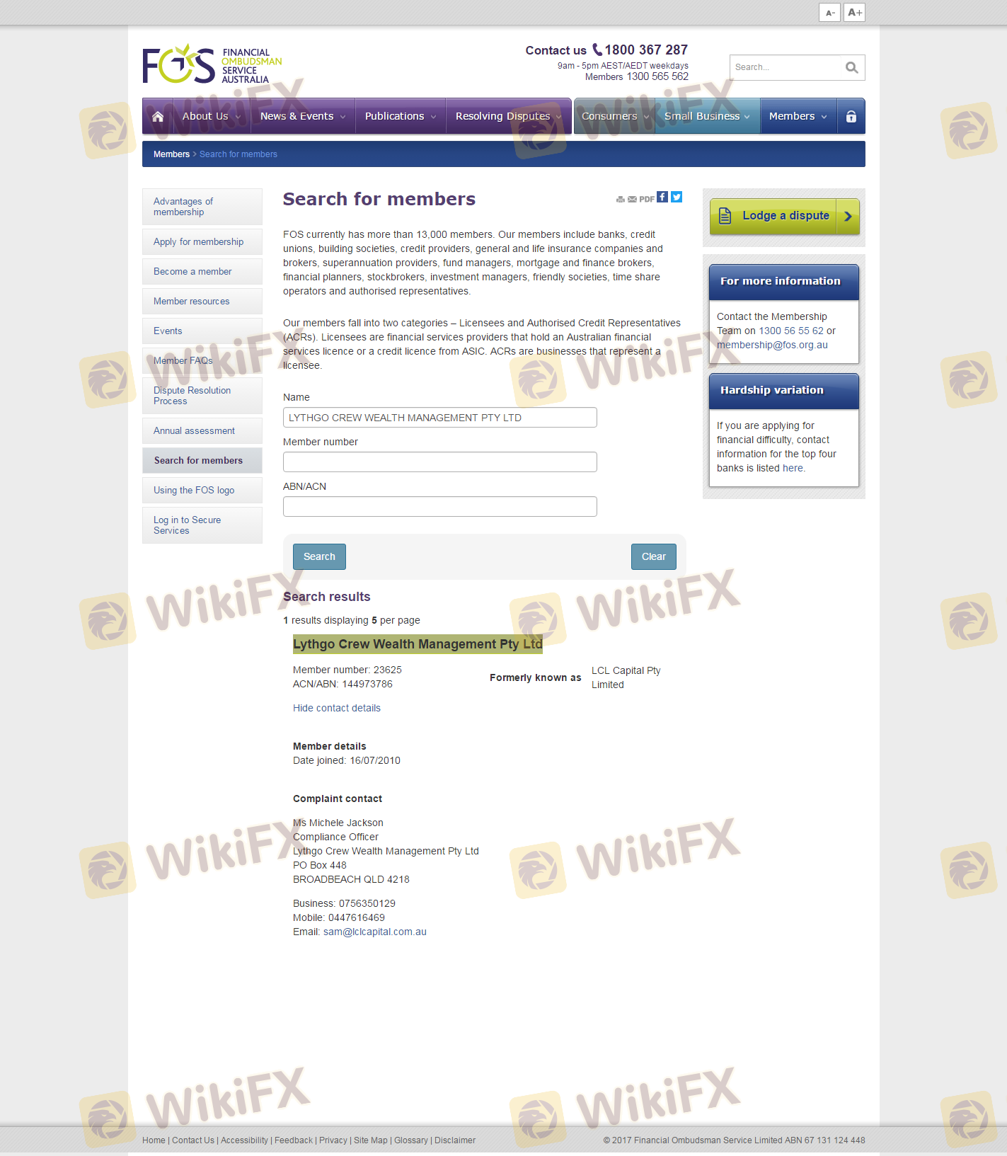 Australian Securities and Investments Commission (ASIC) dikenal dengan kerangka regulasi yang ketat, dirancang untuk melindungi investor. Namun, tidak adanya nomor lisensi yang valid dan keluhan tentang klon menimbulkan pertanyaan tentang legitimasi LCL. Selain itu, masalah kepatuhan di masa lalu telah dilaporkan, termasuk keluhan klien yang tidak dapat menarik dana. Kurangnya pengawasan regulasi ini adalah masalah serius dan menunjukkan bahwa calon investor harus berhati-hati ketika mempertimbangkan trading dengan LCL.