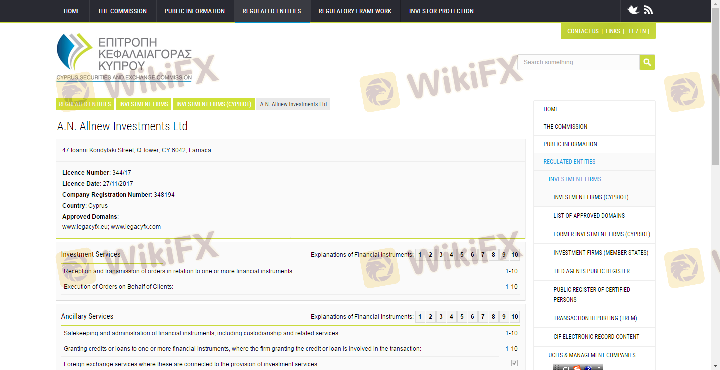 Mengenai legitimasi broker forex LegacyFX, ia menyediakan Siprus CYSEC, Vanuatu VFSC, dan (Kami juga melakukan investigasi lapangan terkait aspek keamanan.).