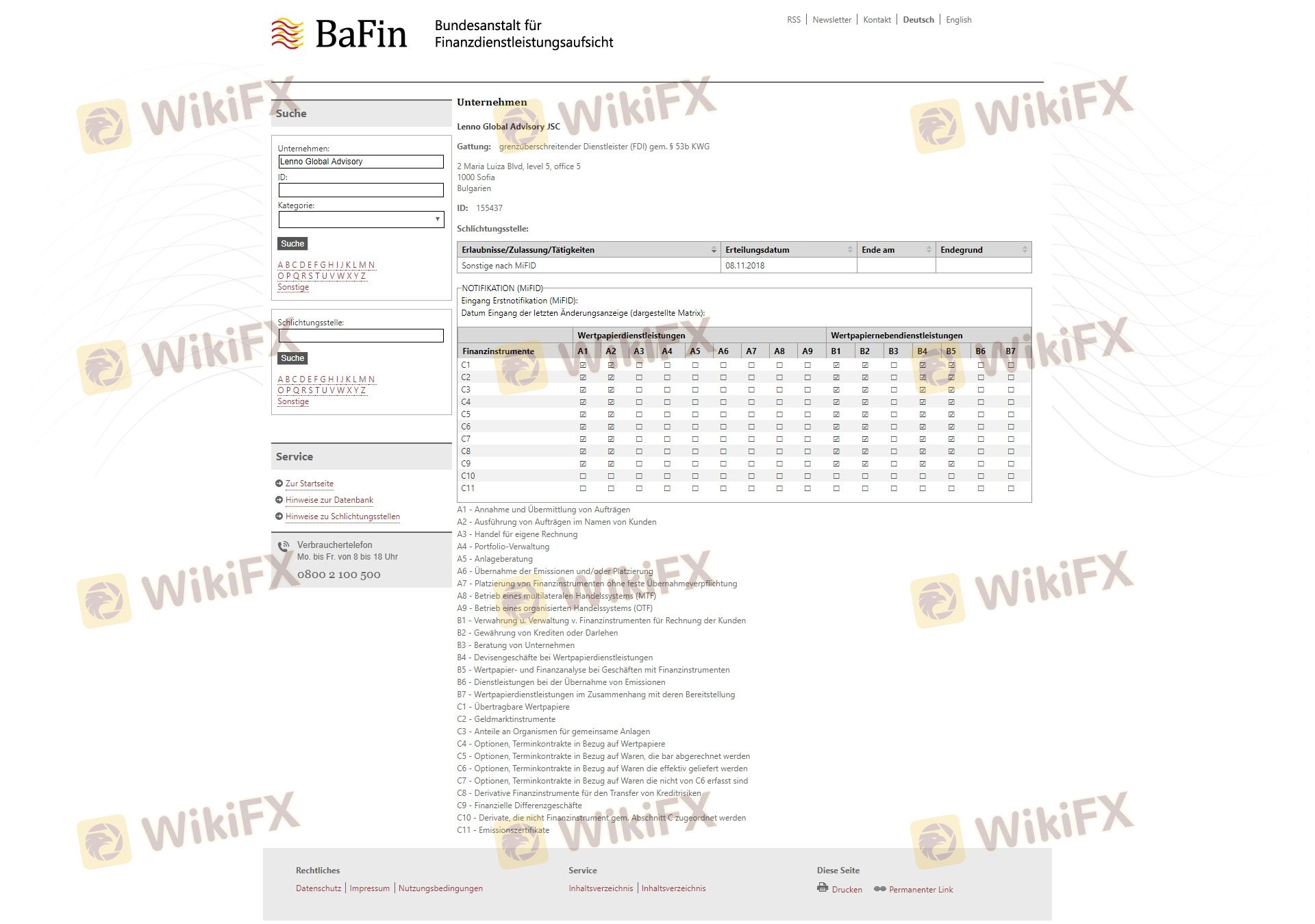 Mengenai legitimasi broker forex Lenno, ia menyediakan Jerman BaFin, Kerajaan Inggris FCA, dan .