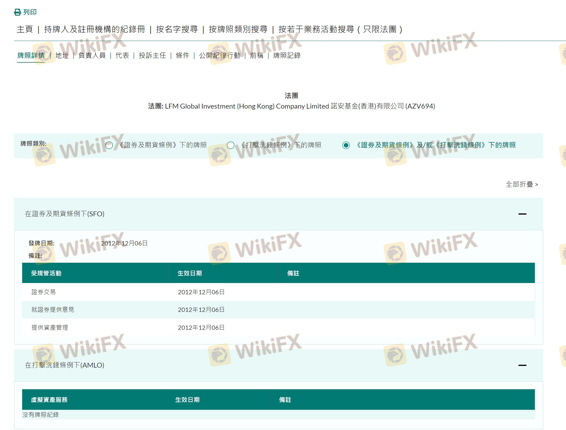 Mengenai legitimasi broker forex LFM, ia menyediakan Hong Kong SFC, dan .