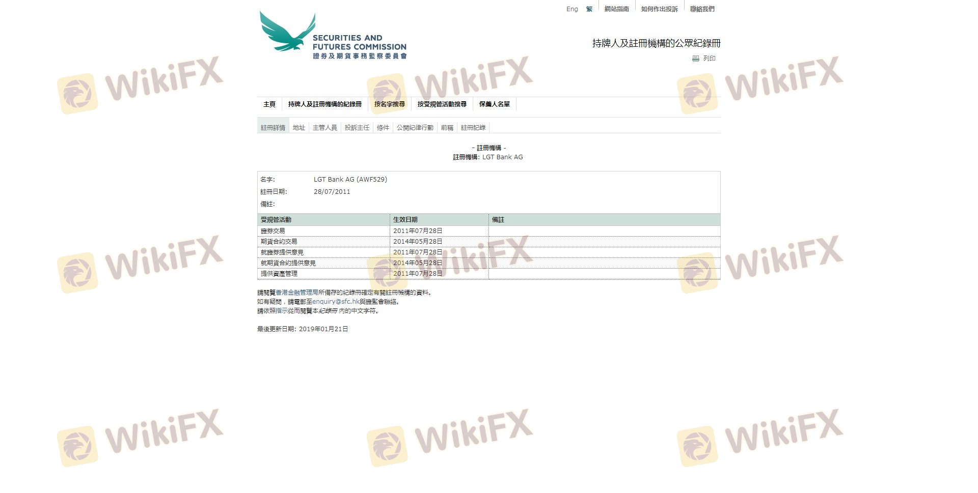 Mengenai legitimasi broker forex LGT, ia menyediakan Hong Kong SFC, dan (Kami juga melakukan investigasi lapangan terkait aspek keamanan.).