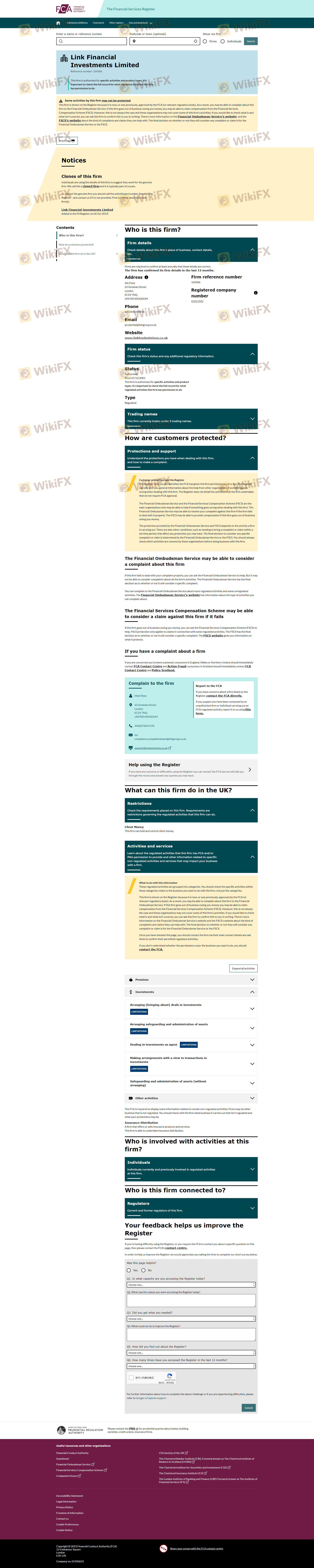 Mengenai legitimasi broker forex Link Asset Services, ia menyediakan Kerajaan Inggris FCA, dan (Kami juga melakukan investigasi lapangan terkait aspek keamanan.).