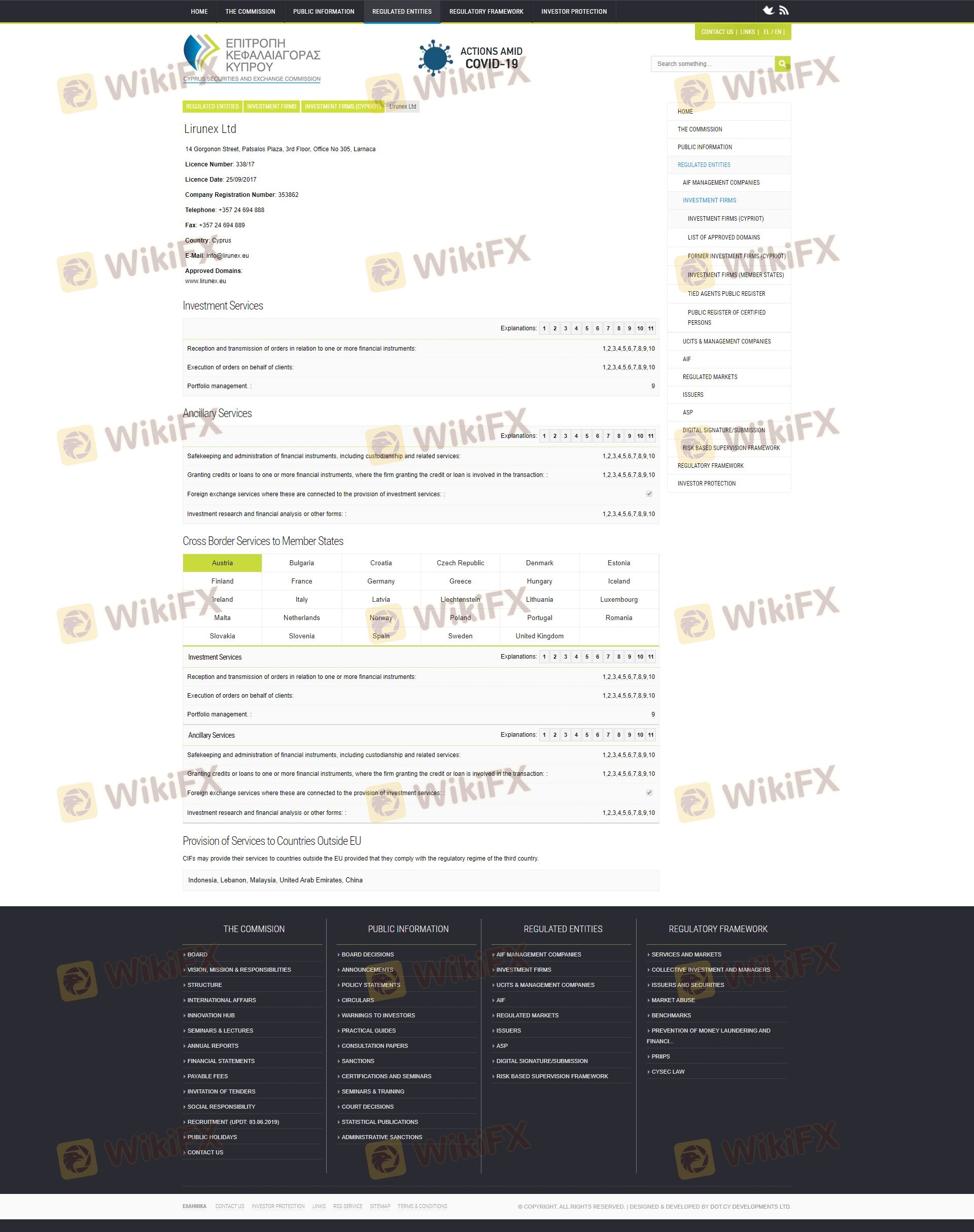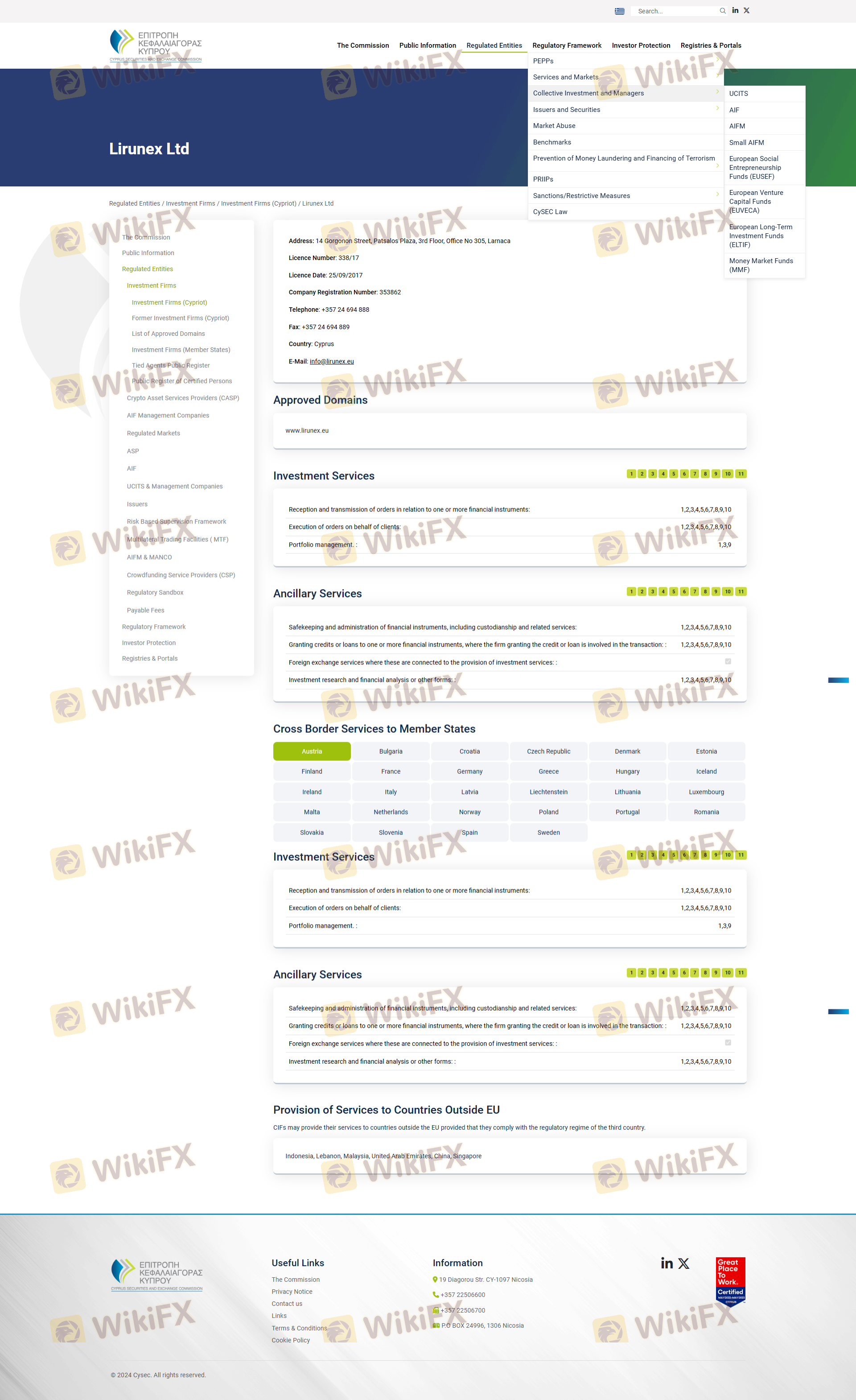Lingkungan regulasi di mana broker beroperasi sangat penting untuk memastikan keamanan dana klien dan integritas praktik trading. Lirunex diatur oleh Cyprus Securities and Exchange Commission (CySEC) dan Labuan Financial Services Authority (LFSA). Kehadiran lembaga regulasi ini menunjukkan bahwa Lirunex mematuhi standar operasional tertentu yang dirancang untuk melindungi trader.