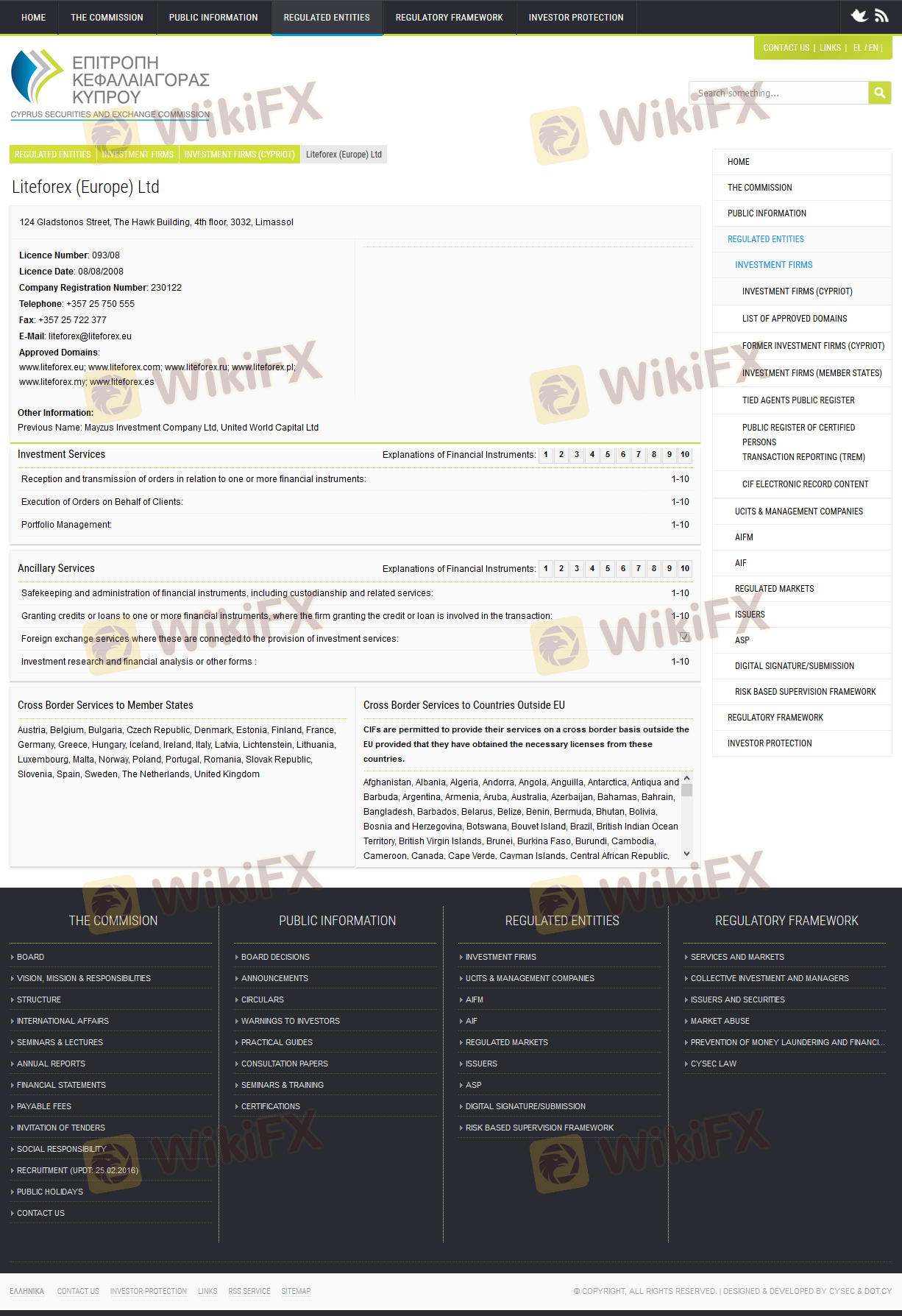 Mengenai legitimasi broker forex LiteForex, ia menyediakan Siprus CYSEC, dan (Kami juga melakukan investigasi lapangan terkait aspek keamanan.).