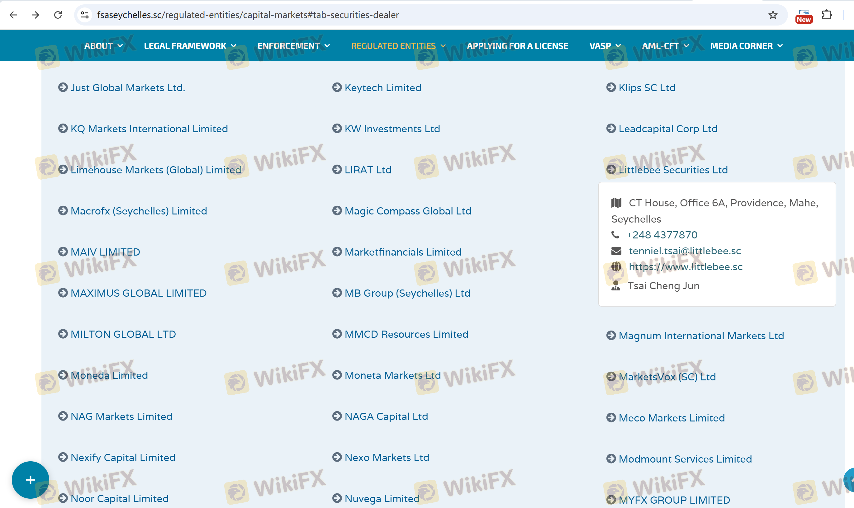 Salah satu aspek paling kritis untuk menilai apakah Littlebee aman adalah status regulasinya. Regulasi memainkan peran penting dalam memastikan bahwa broker mematuhi standar industri dan menjaga tingkat transparansi serta akuntabilitas. Littlebee terdaftar di Seychelles, yang dikenal memiliki lingkungan regulasi yang kurang ketat dibandingkan yurisdiksi lain. Kurangnya regulasi yang kuat ini menimbulkan kekhawatiran tentang legitimasi broker dan perlindungan yang ditawarkan kepada kliennya.