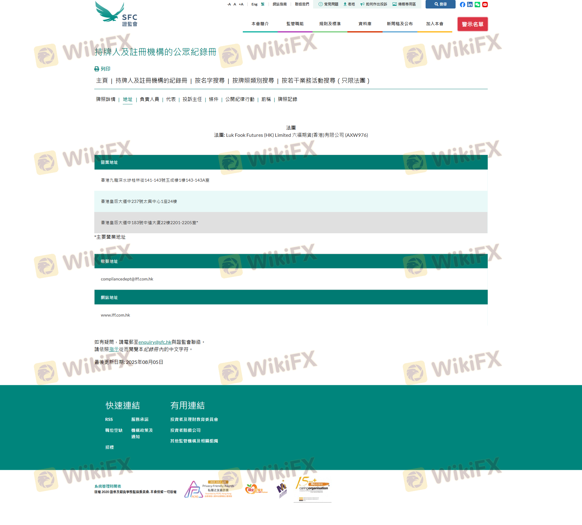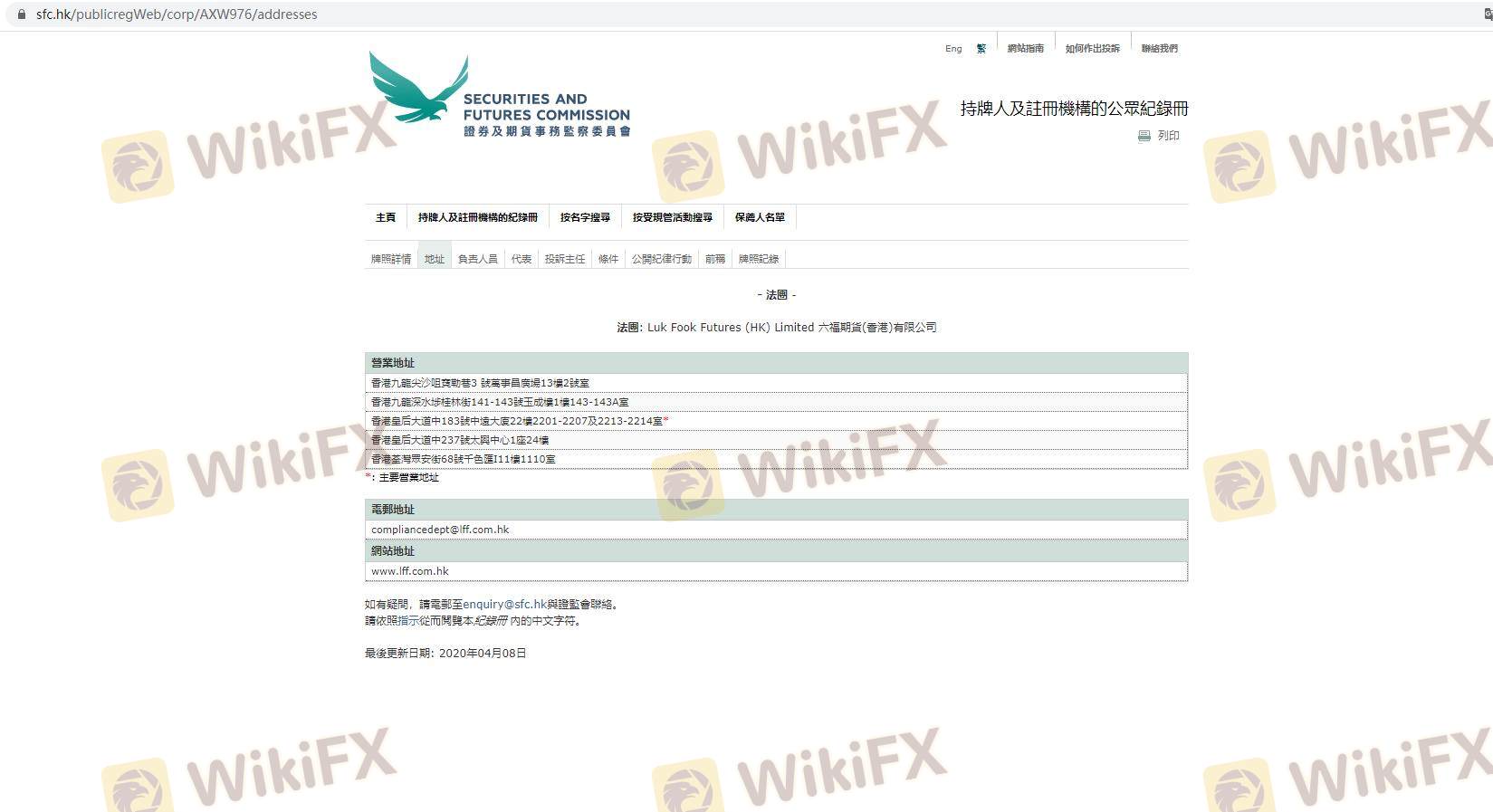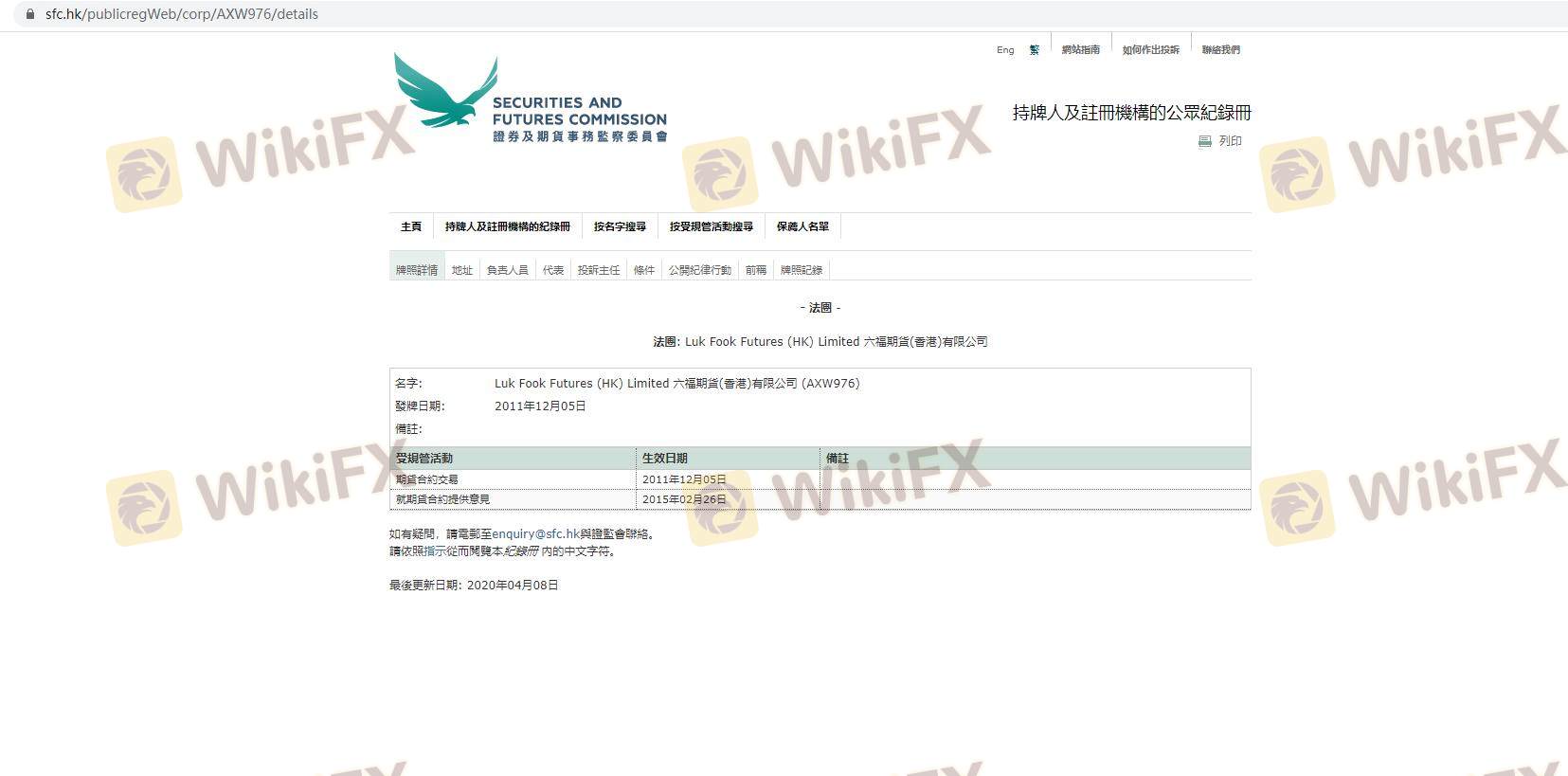 Mengenai legitimasi broker forex LUKFOOK FINANCIAL, ia menyediakan Hong Kong SFC, dan (Kami juga melakukan investigasi lapangan terkait aspek keamanan.).
