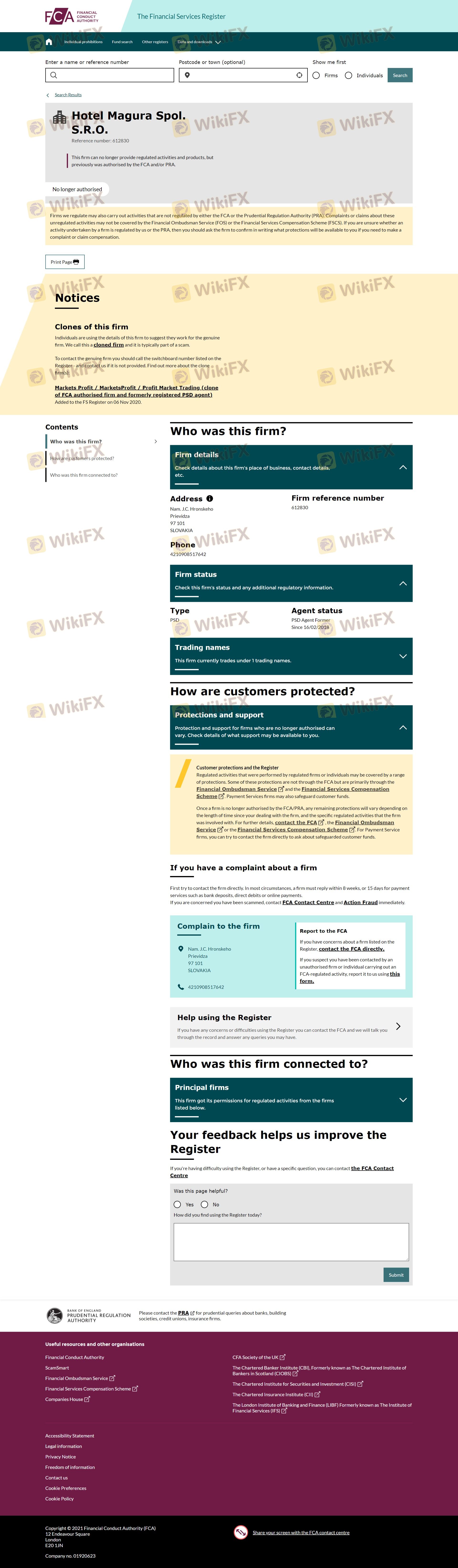 Memahami kerangka regulasi yang mengelilingi seorang broker sangat penting untuk menilai keabsahannya. pasarsProfit mengklaim diatur oleh Financial Conduct Authority (FCA) di Inggris; namun, klaim ini telah dipertanyakan. FCA secara publik menyatakan bahwa pasarsProfit tidak diotorisasi atau terdaftar, mengklasifikasikannya sebagai "klon perusahaan" yang menyesatkan status regulasinya. Kurangnya pengawasan yang sah menimbulkan sinyal bahaya bagi calon investor.