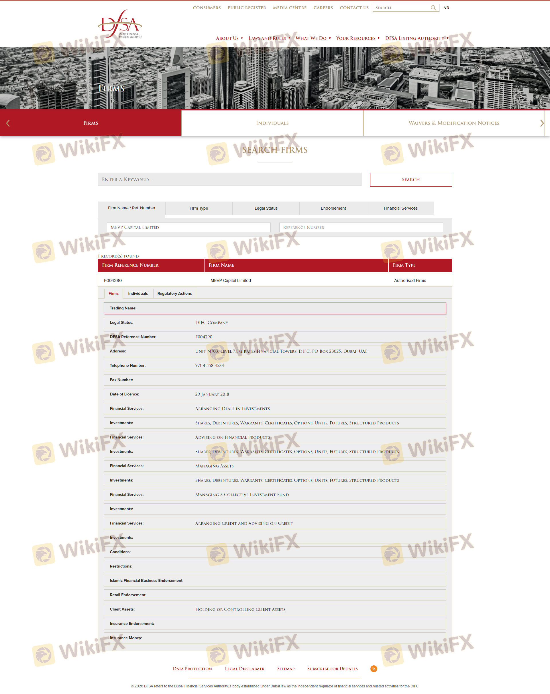 Mengenai legitimasi broker forex MEVP, ia menyediakan Uni Emirat Arab DFSA, dan (Kami juga melakukan investigasi lapangan terkait aspek keamanan.).