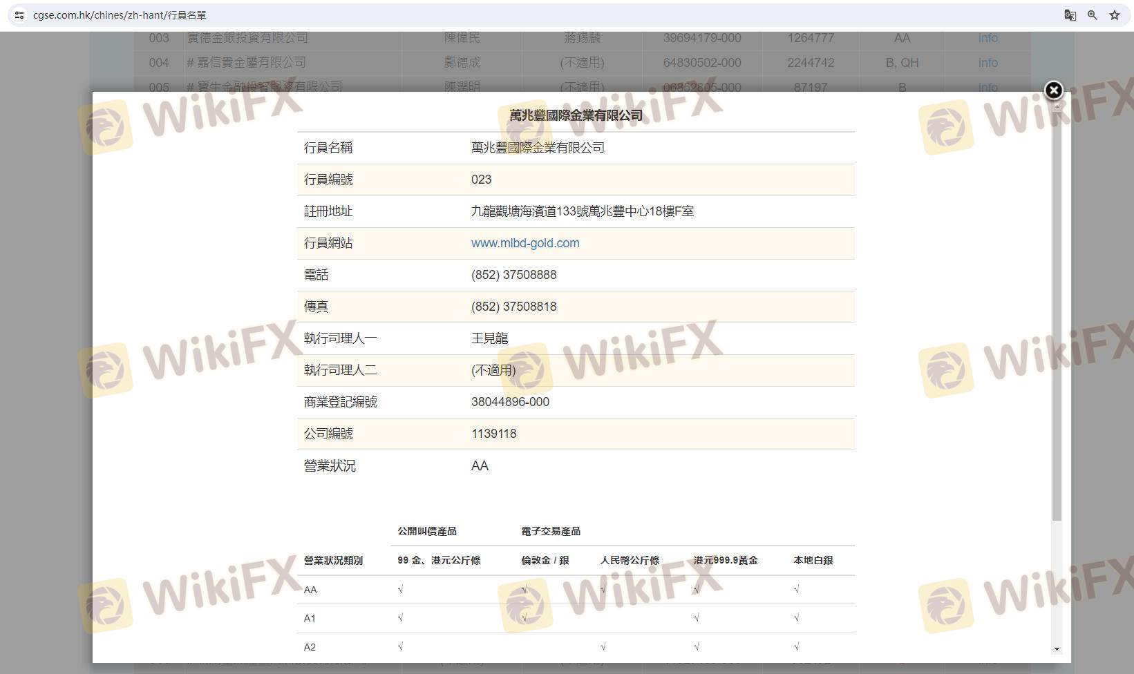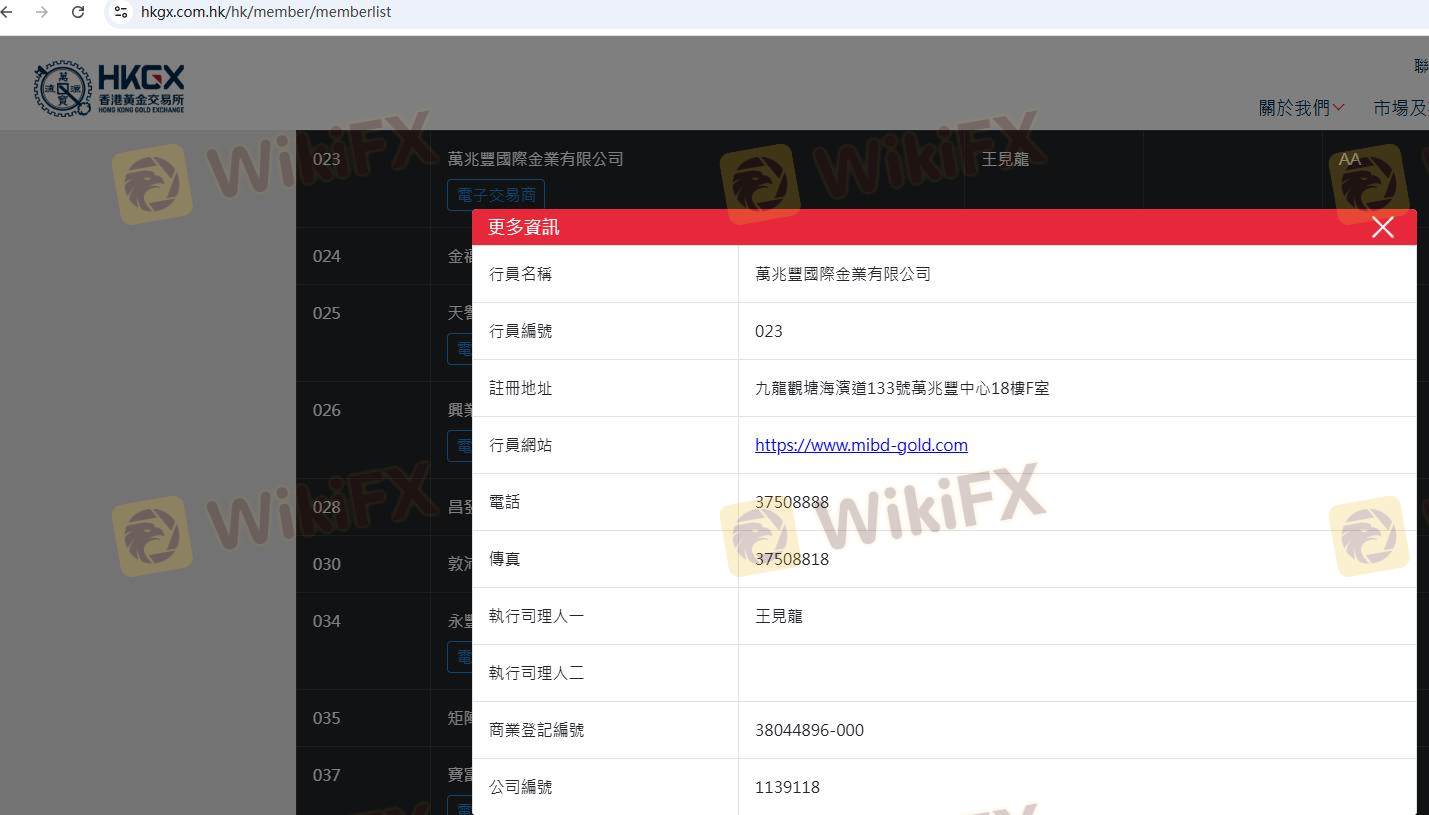 MIBD beroperasi di bawah regulasi Chinese Gold & Silver Exchange Society (CGSE), yang merupakan otoritas yang diakui di Hong Kong. Regulasi adalah indikator kunci kredibilitas broker, karena memastikan kepatuhan terhadap standar keuangan yang telah ditetapkan dan melindungi kepentingan trader. Berikut adalah ringkasan informasi regulasi MIBD: