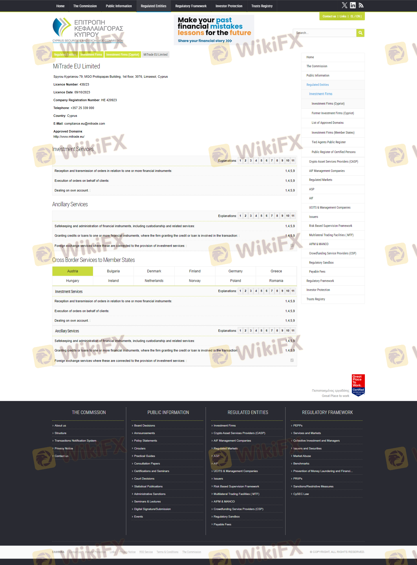 Mengenai legitimasi broker forex MiTRADE, ia menyediakan Australia ASIC, Siprus CYSEC, Afrika Selatan FSCA, dan (Kami juga melakukan investigasi lapangan terkait aspek keamanan.).
