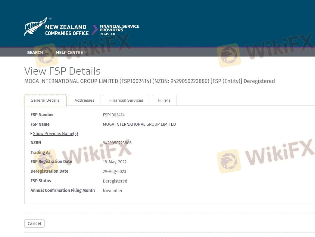 Mengenai legitimasi broker forex MOGA INTERNATIONAL, ia menyediakan Australia ASIC, Selandia Baru FSPR, dan .
