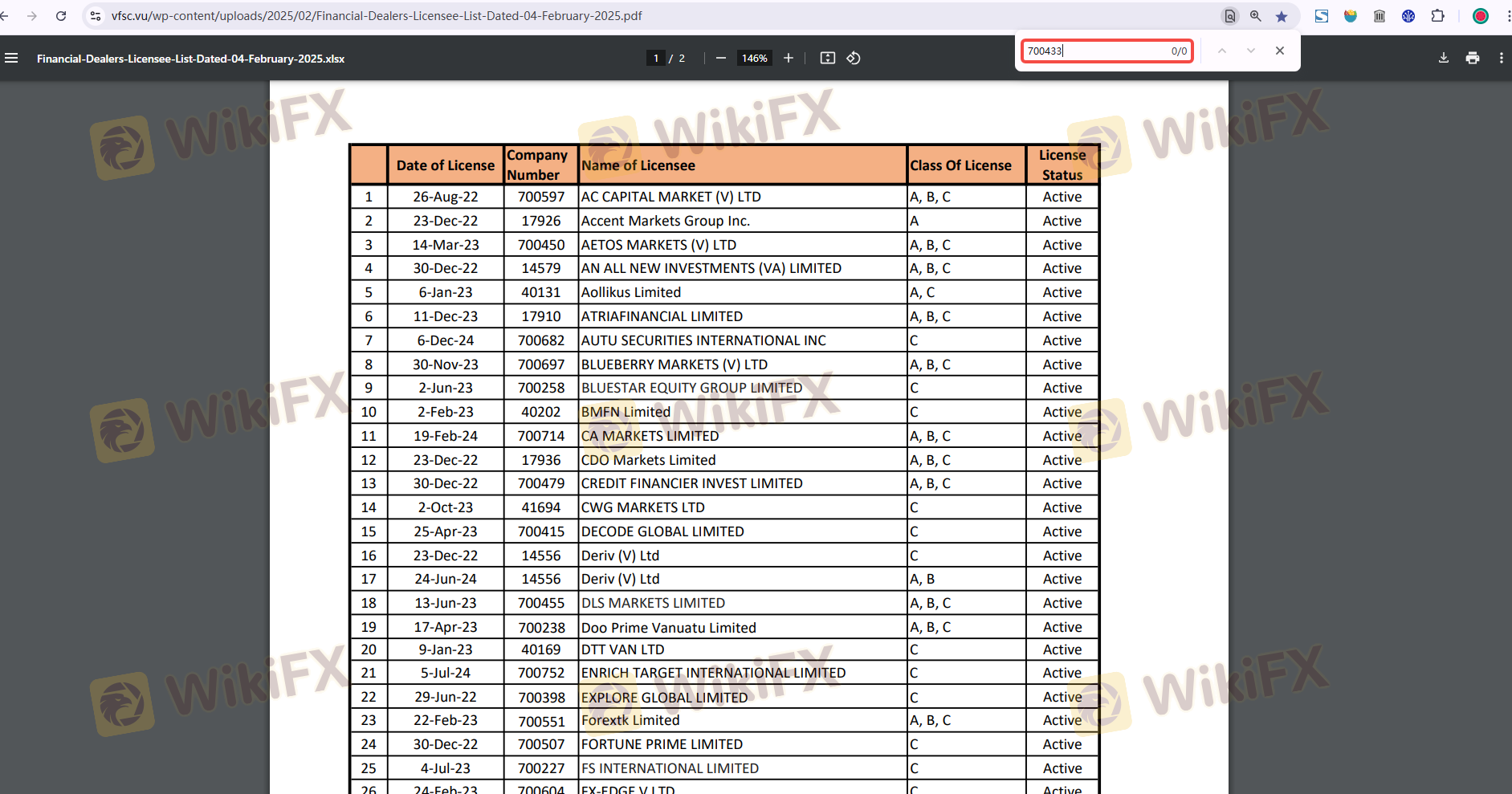 | VFSC | 700443 | Vanuatu | Terverifikasi |