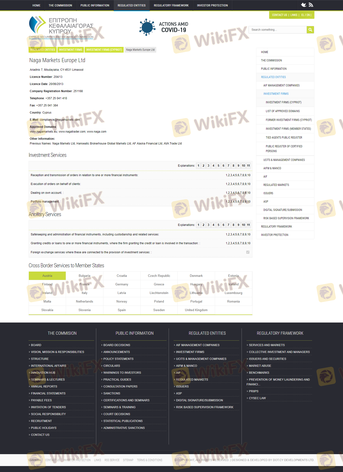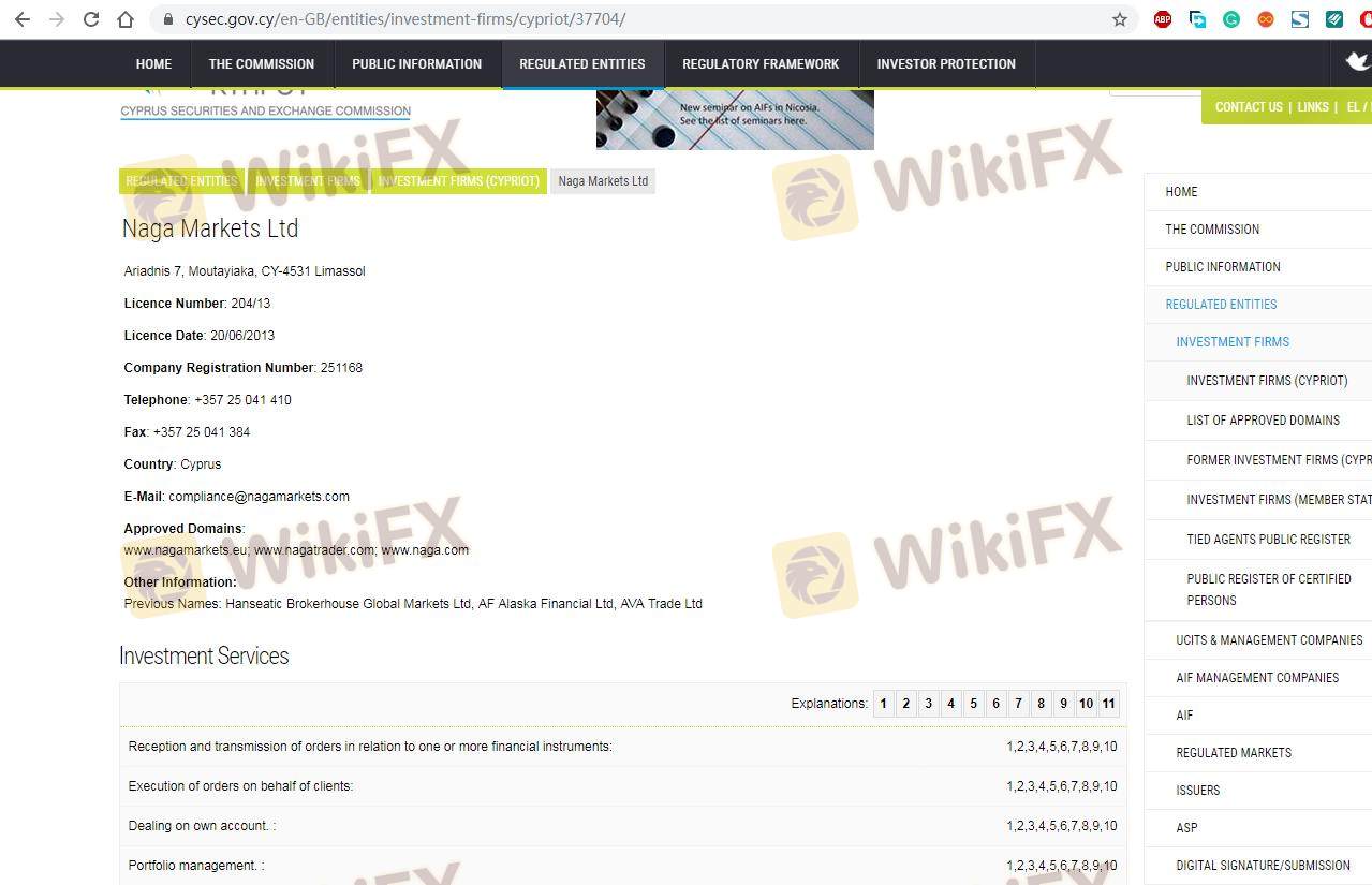 Mengenai legitimasi broker forex NAGA, ia menyediakan Siprus CYSEC, Seychelles FSA, dan (Kami juga melakukan investigasi lapangan terkait aspek keamanan.).