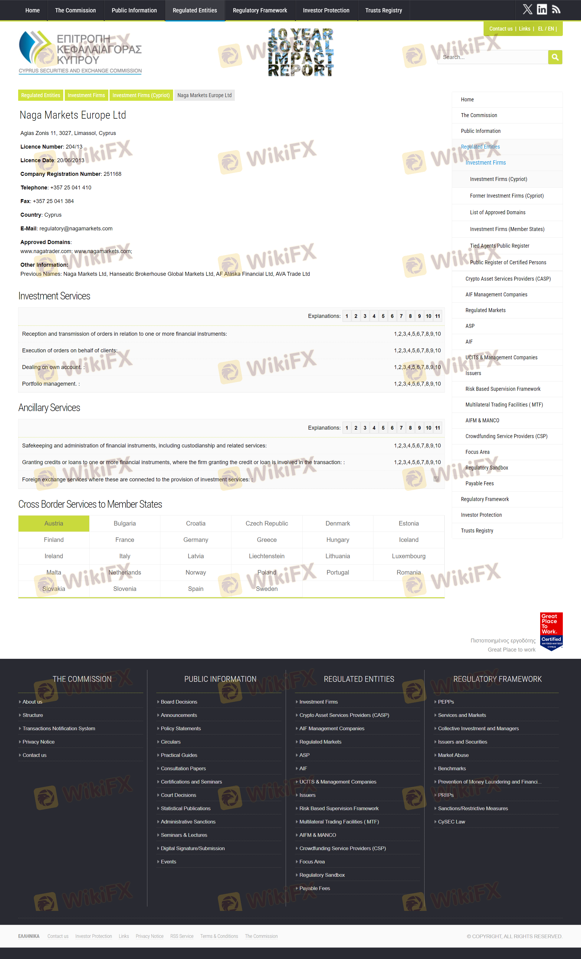 Kerangka regulasi yang mengelilingi sebuah broker adalah salah satu faktor paling kritis dalam menilai legitimasinya. NAGA beroperasi di bawah pengawasan Cyprus Securities and Exchange Commission (CySEC), yang dikenal dengan standar kepatuhan yang ketat. Pengawasan regulasi ini memastikan bahwa broker mematuhi pedoman operasional tertentu, melindungi kepentingan para trader.
