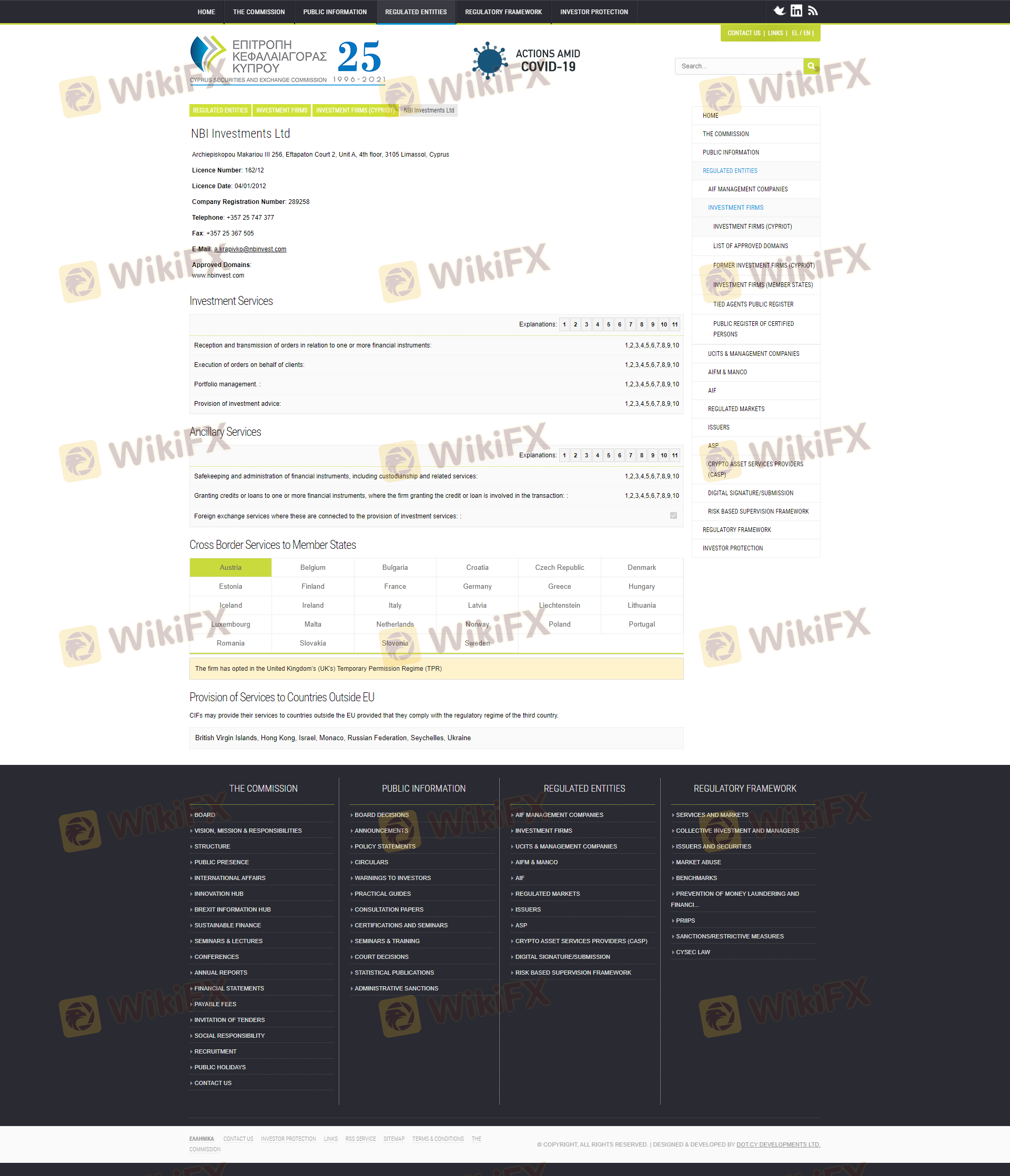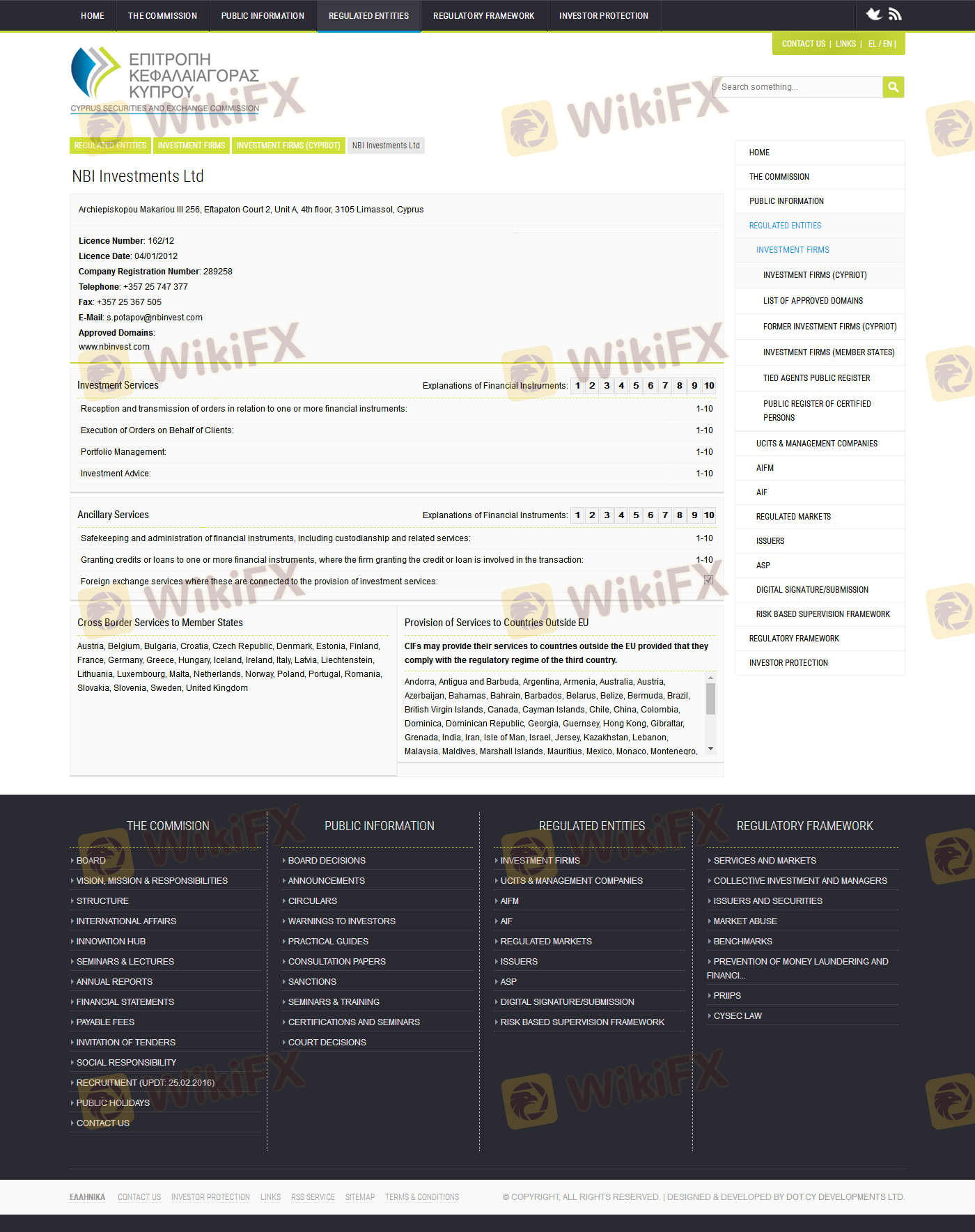 Mengenai legitimasi broker forex NBI, ia menyediakan Siprus CYSEC, dan (Kami juga melakukan investigasi lapangan terkait aspek keamanan.).