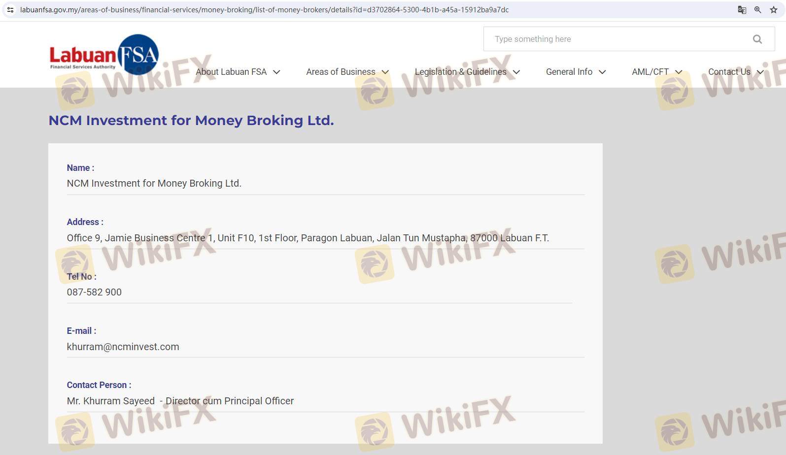 Lingkungan regulasi di mana broker beroperasi memainkan peran penting dalam menentukan kredibilitas dan keamanan dana klien. NCM Investment mengklaim diatur oleh beberapa otoritas keuangan, termasuk Capital Markets Authority (CMA) di Kuwait, Labuan Financial Services Authority (LFSA) di Malaysia, Securities and Commodities Authority (SCA) di UAE, Capital Markets Board (CMB) di Turki, dan Jordan Securities Commission (JSC). Berikut adalah ringkasan informasi regulasi utama: